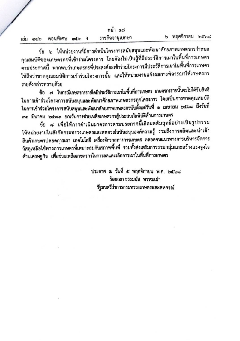 มาตรการบริหารจัดการป้องกันและแก้ไขปัญหาฝุ่นละอองขนาดเล็กไม่เกิน 2.5 ไมครอน ภาคการเกษตร ฉบับที่ 2 พ.ศ.2568