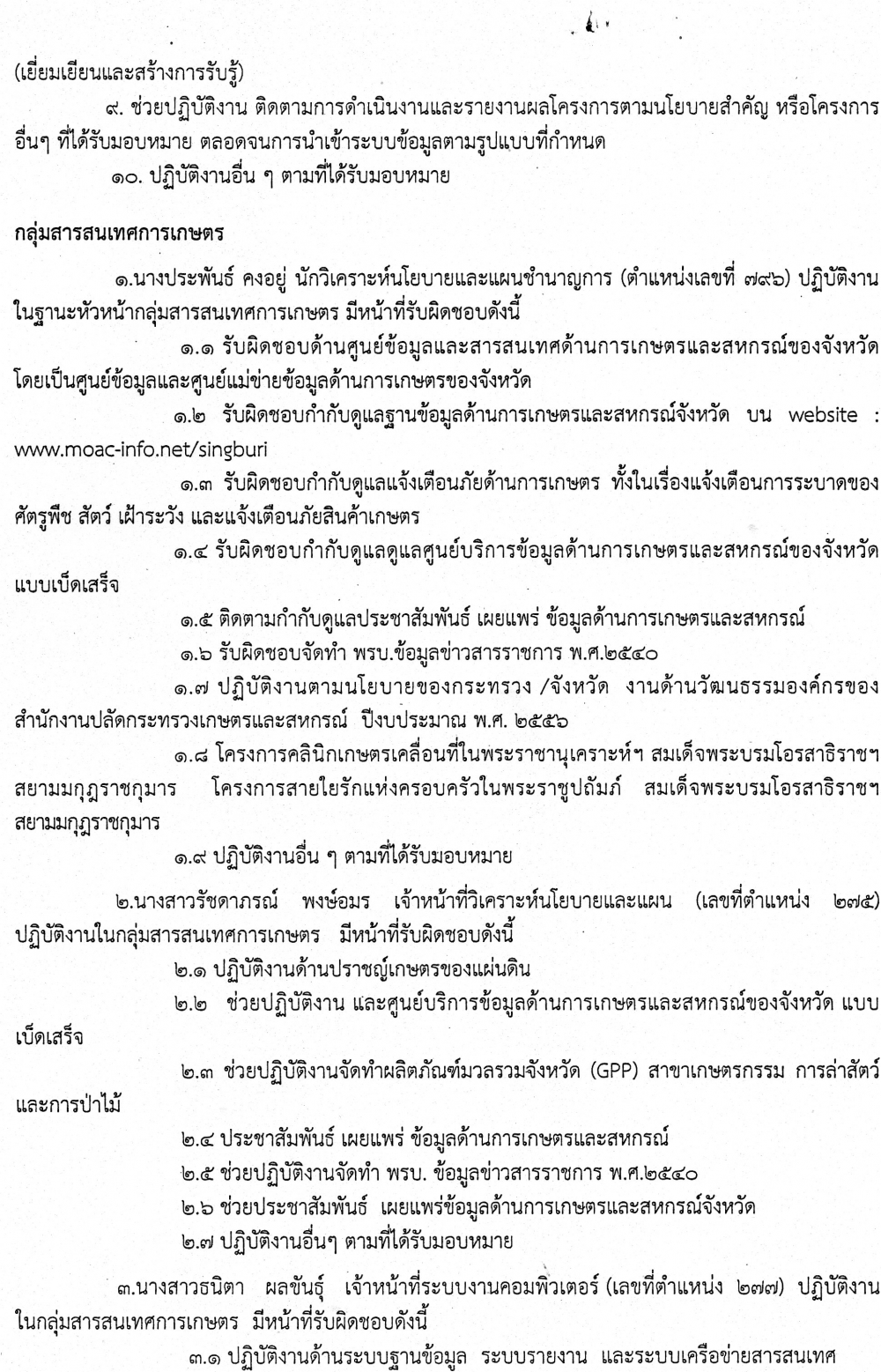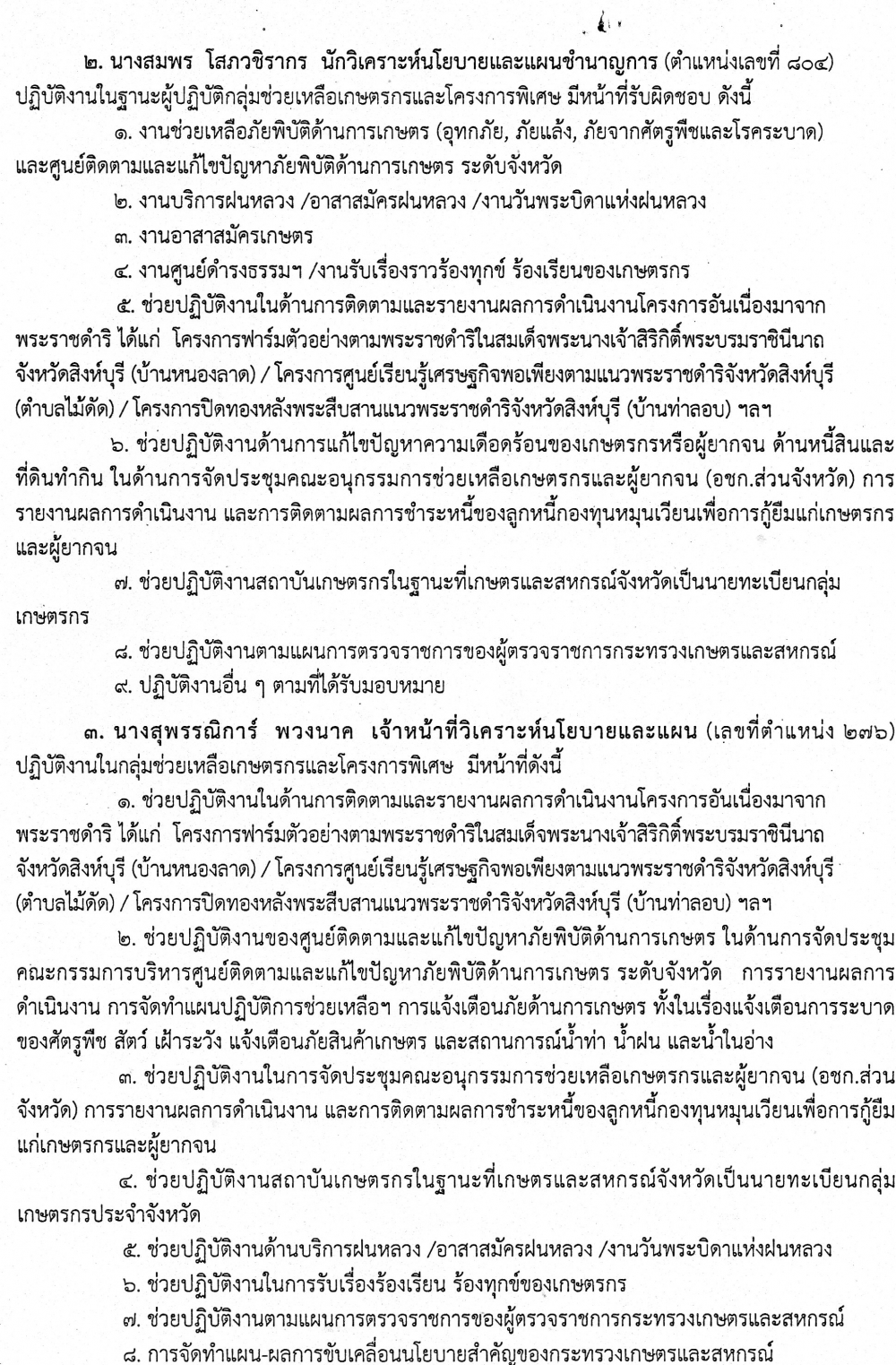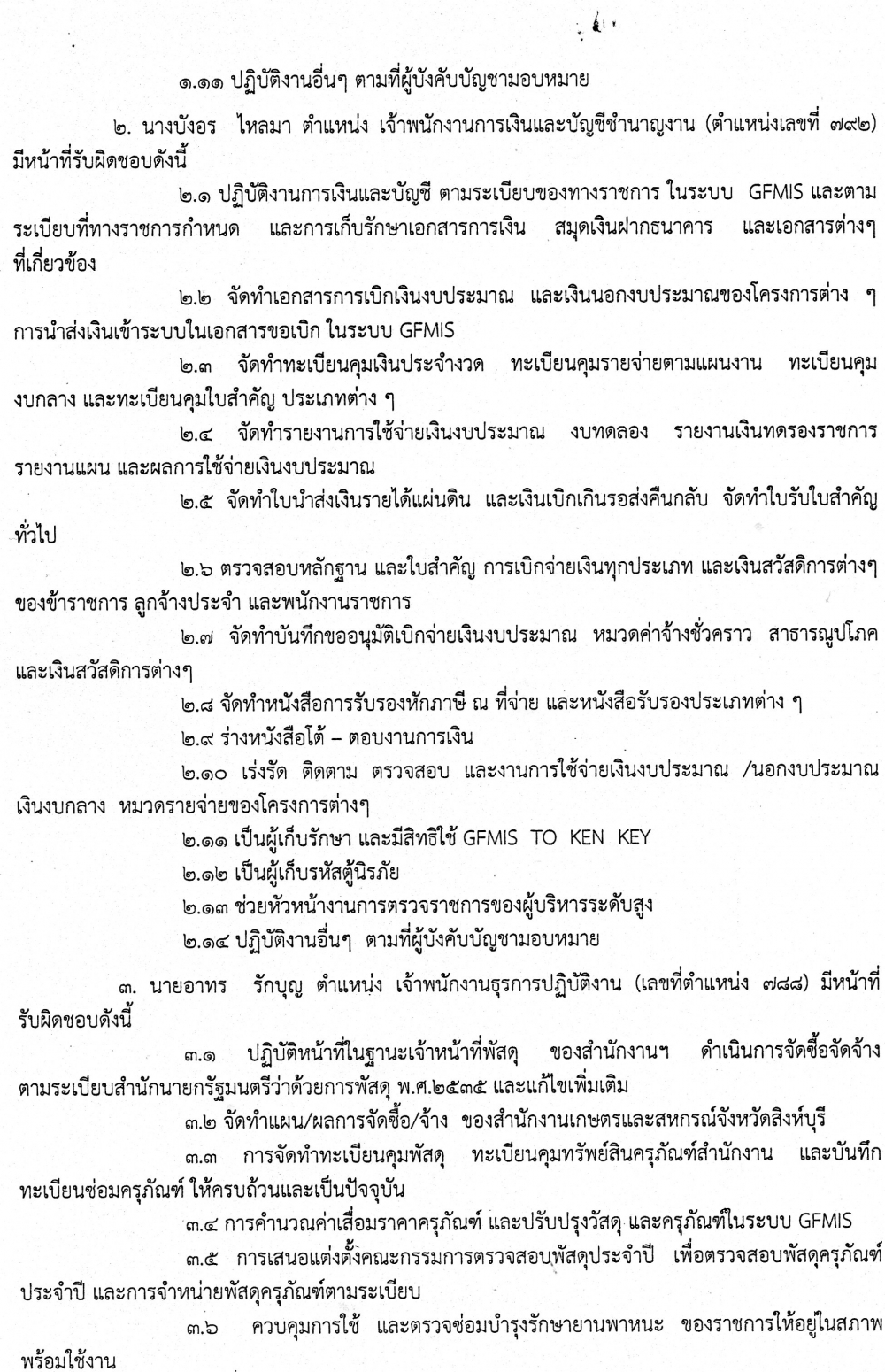 คำสั่งสำนักงานเกษตรและสหกรณ์จังหวัดสิงห์บุรีที่ 1/2560 เรื่อง มอบหมายหน้าที่ความรับผิดชอบให้ข้าราชการและพนักงานราชการปฏิบัติงานในสำนักงานเกษตรและสหกรณ์จังหวัดสิงห์บุรี ลงวันที่ 16 กุมภาพันธ์ 2560