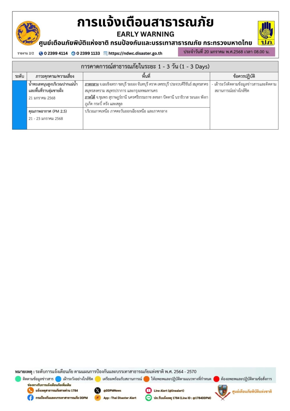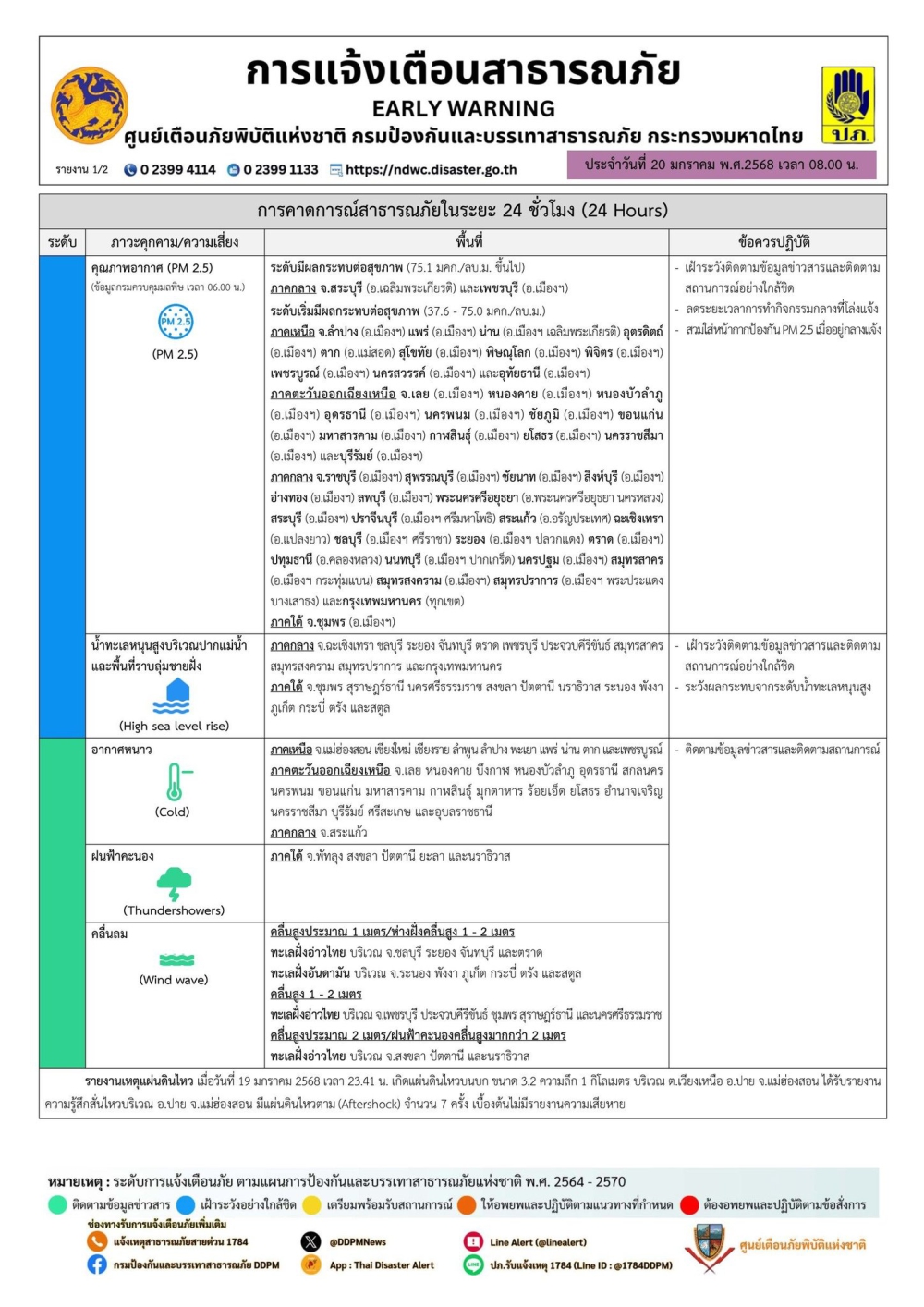 รายงานคาดการณ์และแจ้งเตือนสาธารณภัย ประจำวันที่ 20 มกราคม 2568