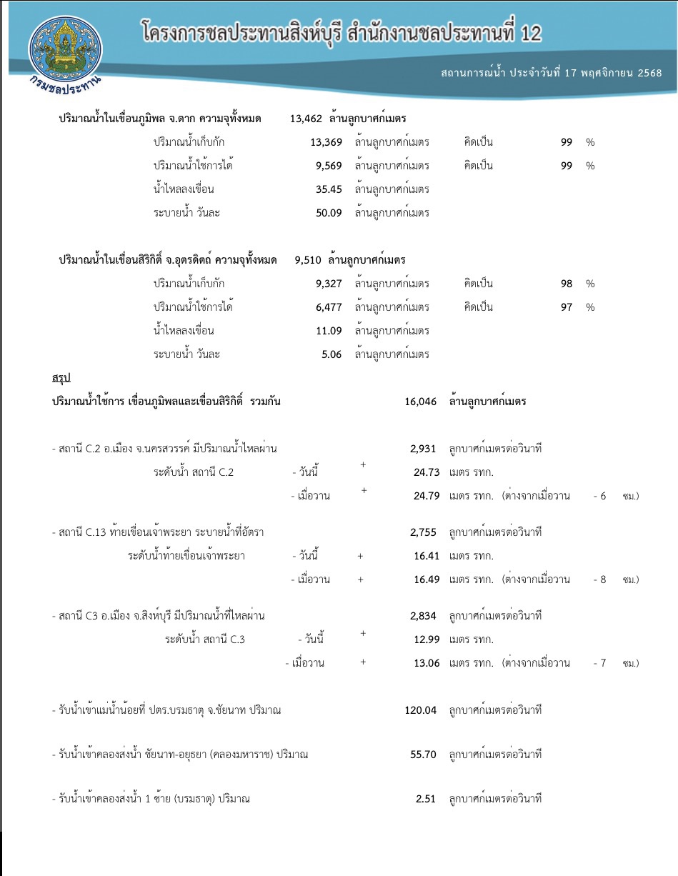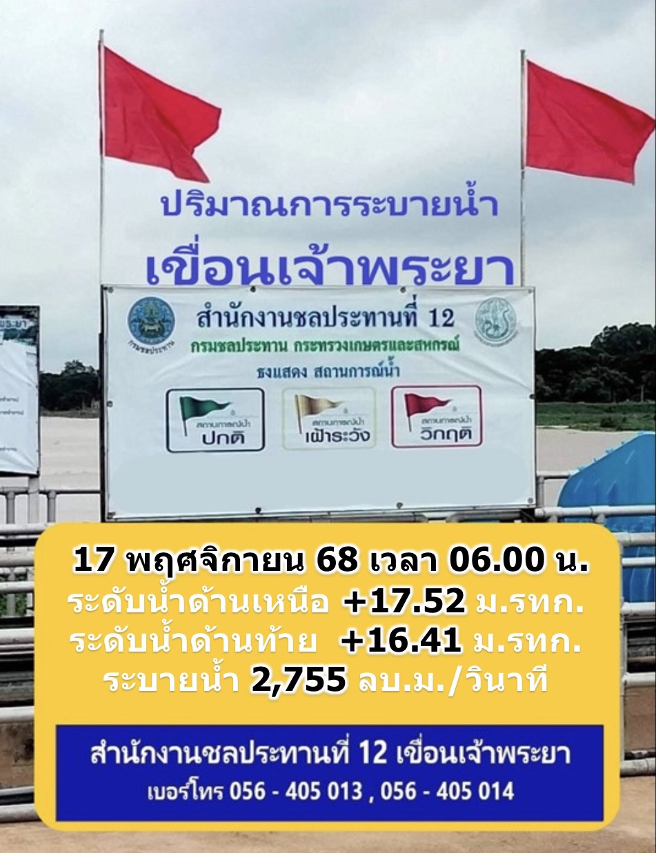 ข่าวแจ้งเตือนสถานการณ์น้ำวันที่ 17 พ.ย.2568