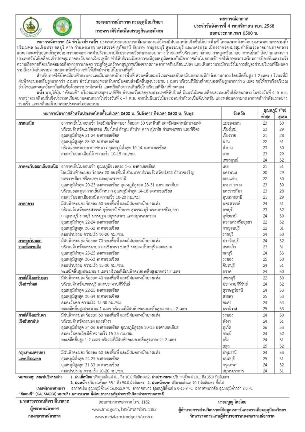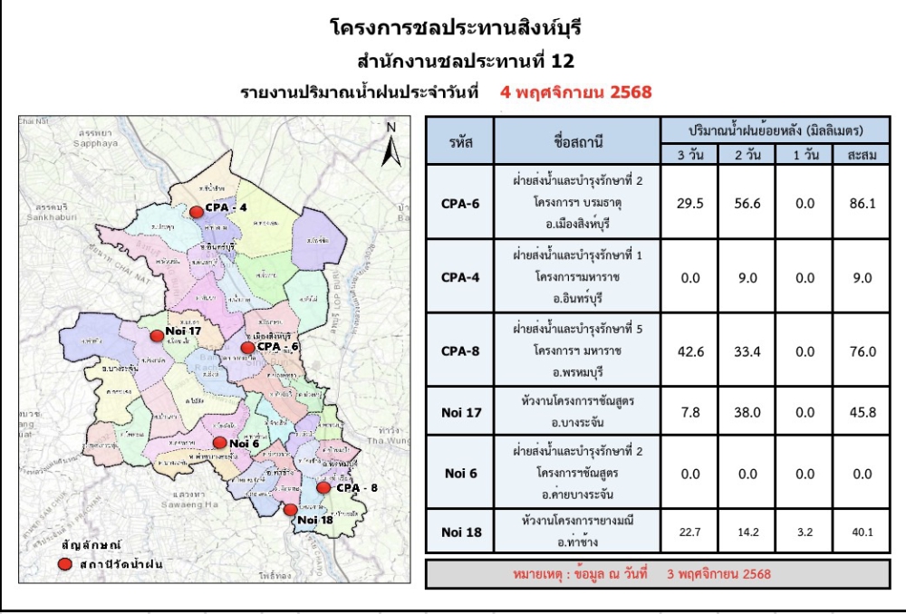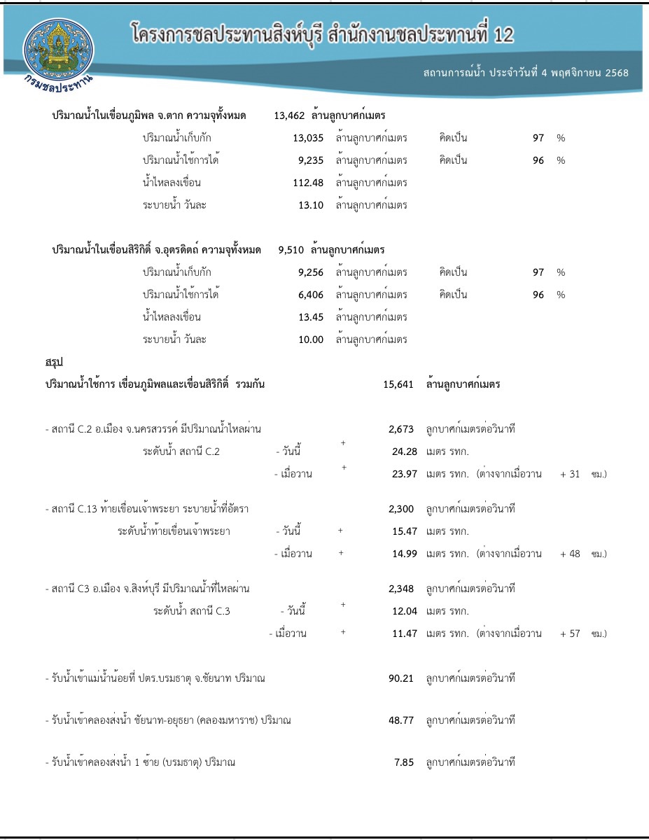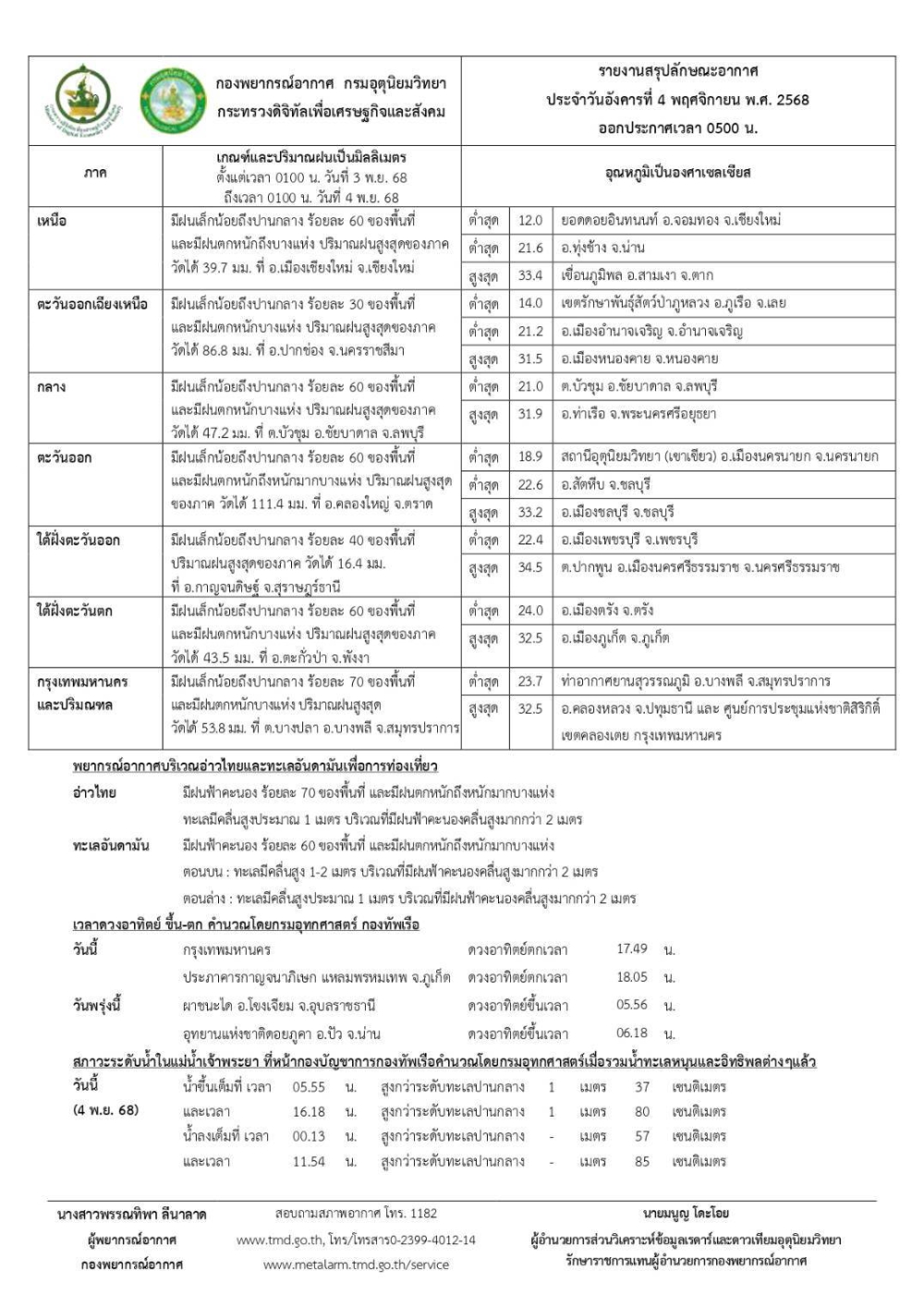 รายงานสถานการณ์น้ำประจำวันที่ 4 พฤศจิกายน 2568