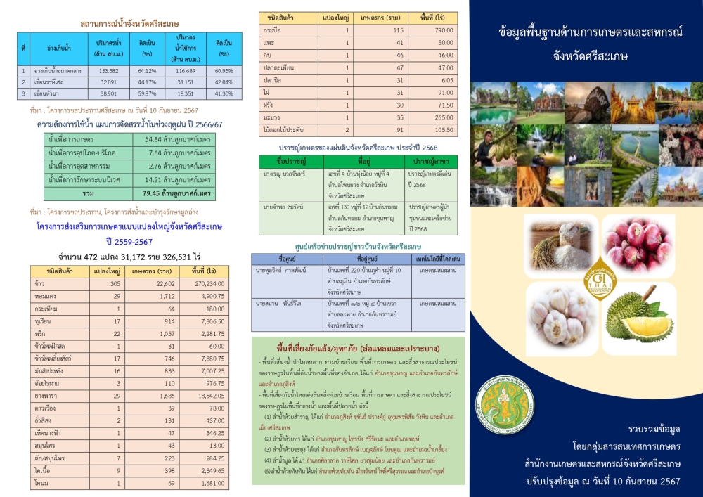 ข้อมูลพื้นฐานด้านการเกษตรและสหกรณ์จังหวัดศรีสะเกษ