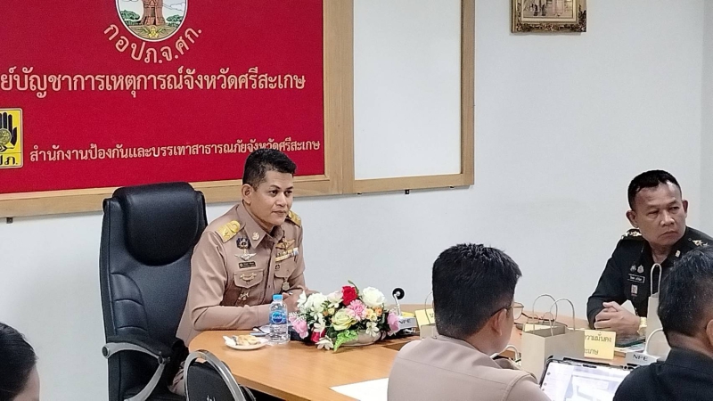 นางสาววันลีย์ เจริญวิทย์ธนเดช เกษตรและสหกรณ์จังหวัดศรีสะเกษ ร่วมการประชุมกองบัญชาการป้องกันและบรรเทาสาธารณภัยแห่งชาติ (บกปภ.ช.) เพื่อเตรียมความพร้อมรับสถานการณ์อุทกภัยในห้วงฤดูฝน และติดตามการฝึกการป้องกันและบรรเทาสาธารณภัย ปี 2568 ผ่านสื่ออิเล็กทรอนิกส์ ณ ห้องประชุมสำนักงานป้องกันและบรรเทาสาธารณภัยจังหวัดศรีสะเกษ ชั้น 2 อาคารศูนย์ฝึกประสบการณ์วิชาอเนกประสงค์ บุญชง วีสมหมาย โรงแรมศรีพฤทธาลัย มหาวิทยาลัยราชภัฏศรีสะเกษ โดยมีวาระสำคัญดังนี้ 1) การเตรียมความพร้อมรับสถานการณ์อุทกภัย และแนวโน้มสถานการณ์ 2) การติดตามการเตรียมความพร้อม และสถานการณ์อุทกภัยในระดับพื้นที่ 3) การติดตามผลการฝึกการป้องกันและบรรเทาสาธารณภัย ปี 2568 4) ข้อสั่งการในการเตรียมความพร้อมรับสถานการณ์อุทกภัย และการให้ความช่วยเหลือ