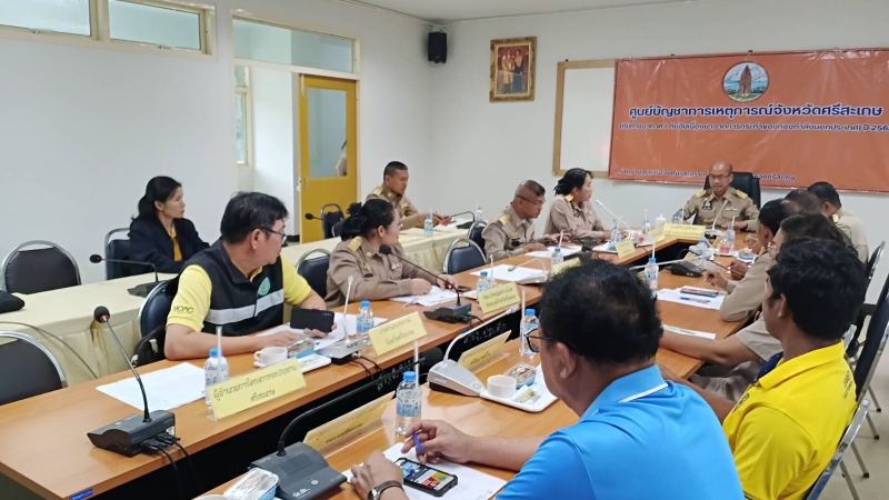 นางสาววันลีย์ เจริญวิทย์ธนเดช เกษตรและสหกรณ์จังหวัดศรีสะเกษ มอบหมายให้ นายธนาวิทย์ แสวงผล นักวิเคราะห์นโยบายและแผนชำนาญการ หัวหน้ากลุ่มช่วยเหลือเกษตรกรและโครงการพิเศษ พร้อมด้วย นางบุษบา สุขศรี นักวิเคราะห์นโยบายและแผนชำนาญการ ร่วมการประชุมคณะกรรมการให้ความช่วยเหลือผู้ประสบภัยพิบัติจังหวัดศรีสะเกษ (ก.ช.ภ.จ.ศรีสะเกษ) ครั้งที่ 14/2568 โดยมี นายสุริยา บุตรจินดา รองผู้ว่าราชการจังหวัดศรีสะเกษ เป็นประธานการประชุม ณ ห้องประชุมสำนักงานบรรเทาสาธารณภัยจังหวัดศรีสะเกษ อาคารศูนย์ฝึกประสบการณ์วิชาการอเนกประสงค์ บุญชง วีสมหมาย (ศรีพฤทธาลัย ราชภัฎสัมนาคาร) ชั้น 2 มหาวิทยาลัยราชภัฏศรีสะเกษ เพื่อพิจารณาการให้ความช่วยเหลือผู้ประสบภัยพิบัติกรณีฉุกเฉิน จากกรณีเหตุการณ์สถานการณ์บริเวณชายแดนไทย - กัมพูชา