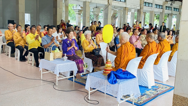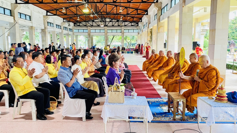 นางสาววันลีย์ เจริญวิทย์ธนเดช เกษตรและสหกรณ์จังหวัดศรีสะเกษ ร่วมพิธีทำบุญใส่บาตร โครงการรณรงค์แต่งกายด้วยผ้าไทยและผ้าพื้นเมือง จังหวัดศรีสะเกษ ประจำปีงบประมาณ พ.ศ. 2568 "ศรีสะเกษพร้อมใจ นุ่งผ้าไทยใส่บาตร ทำความดี วิถีพอเพียง" โดยมี นางสาวชนมณัฐ รอดบุญธรรม รองผู้ว่าราชการจังหวัดศรีสะเกษ เป็นประธานในพิธี ภาครัฐ ภาคเอกชน และภาคประชาชนเข้าร่วมกิจกรรม