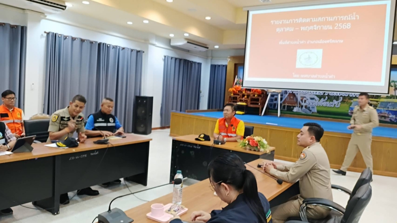 นางสาววันลีย์ เจริญวิทย์ธนเดช เกษตรและสหกรณ์จังหวัดศรีสะเกษ มอบหมายให้ นายธนาวิทย์ แสวงผล นักวิเคราะห์นโยบายและแผนชำนาญการ หัวหน้ากลุ่มช่วยเหลือเกษตรกรและโครงการพิเศษ ลงพื้นที่ตรวจติดตามสถานการณ์อุทกภัยในช่วงฤดูฝน ปี 2568 ในพื้นที่จังหวัดศรีสะเกษ โซนที่ 4 โดยมี นายทวีศักดิ์ ทรงอยู่ รองผู้ว่าราชการจังหวัดศรีสะเกษ นำคณะฯ ลงพื้นที่ตรวจติดตามสถานการณ์น้ำ ร่วมการประชุมรับฟังบรรยายสรุปสถานการณ์อุทกภัยในพื้นที่ มอบแนวทางและข้อสั่งการในการเตรียมการป้องกันและให้ความช่วยเหลือ ณ ห้องประชุมเทศบาลตำบลน้ำคำ อำเภอเมืองศรีสะเกษ จากนั้นลงพื้นที่ติดตามสถานการณ์น้ำในพื้นที่อำเภอเมืองศรีสะเกษ