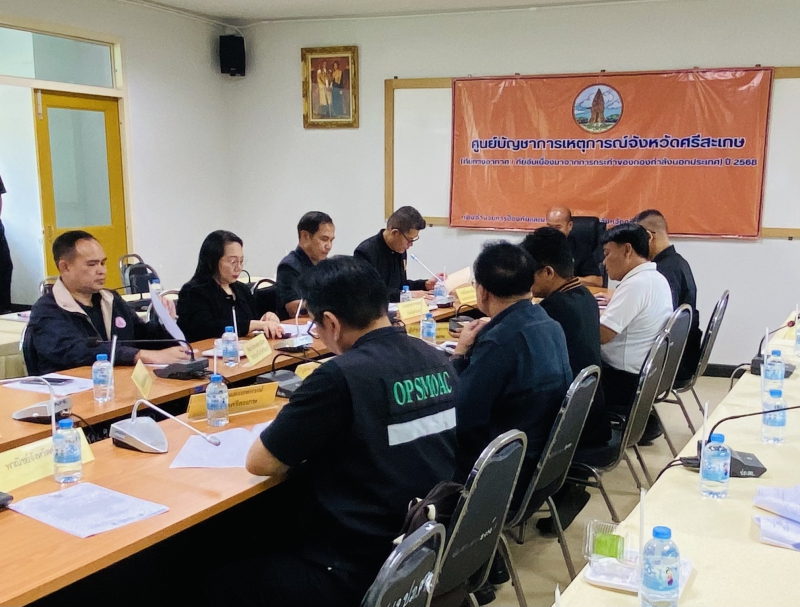 เพื่อพิจารณาการช่วยเหลือผู้ประสบภัยพิบัติกรณีฉุกเฉิน จากเหตุการณ์สถานการณ์บริเวณชายแดนไทย – กัมพูชา ดังนี้ 1. รายงานการพิจารณาให้ความช่วยเหลือผู้ประสบภัยพิบัติกรณีฉุกเฉิน ภัยอันเนื่องมาจากการกระทำของกองกำลังจากนอกประเทศ ตามมติคณะรัฐมนตรี เมื่อวันที่ 26 สิงหาคม 2568 ให้ความช่วยเหลือ ครัวเรือนละ 5,000 บาท ในพื้นที่อำเภอประกาศเขตพื้นที่ประสบสาธารณภัย/เขตการให้ความช่วยเหลือผู้ประสบภัยพิบัติกรณีฉุกเฉิน ภัยอื่นๆ 2. รายงานการพิจารณาเร่งรัดการช่วยเหลือผู้ประสบอุทกภัยในช่วงฤดูฝน ปี 2568 ครัวเรือนละ 9,000 บาท ในพื้นที่จังหวัดศรีสะเกษ 3. รายงานการพิจารณาให้ความช่วยเหลือผู้ประสบภัยพิบัติกรณีฉุกเฉิน ภัยอันเนื่องมาจากการกระทำของกองกำลังจากนอกประเทศ ตามมติคณะรัฐมนตรี เมื่อวันที่ 26 สิงหาคม 2568 ให้ความช่วยเหลือ ครัวเรือนละ 5,000 บาท ที่ไม่สามารถผูกพร้อมเพย์ได้ (อำเภอกันทรลักษ์)