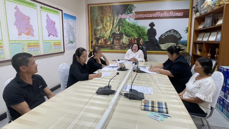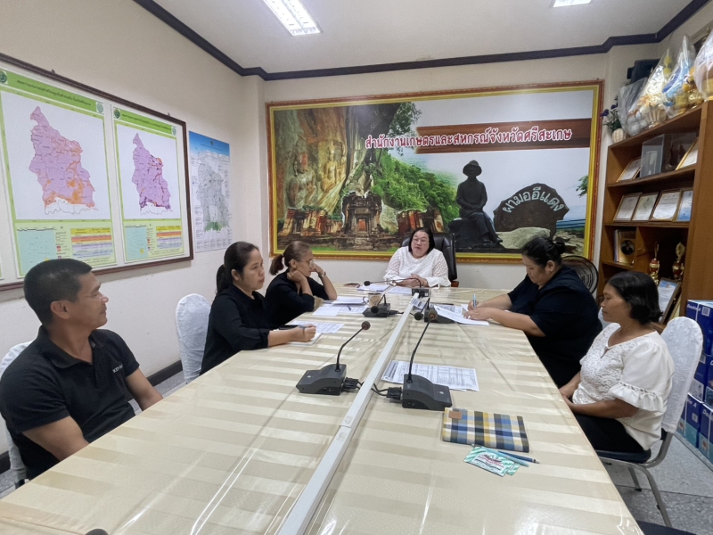 นางสาววันลีย์ เจริญวิทย์ธนเดช เกษตรและสหกรณ์จังหวัดศรีสะเกษ ประชุมฝ่ายบริหารทั่วไป สำนักงานเกษตรและสหกรณ์จังหวัดศรีสะเกษ ณ ห้องประชุมสำนักงานเกษตรและสหกรณ์จังหวัดศรีสะเกษ ชั้น 4 ศาลากลางจังหวัดศรีสะเกษ เพื่อชี้แจงแนวทางการขับเคลื่อนงานและการบริหารงบประมาณของสำนักงานเกษตรและสหกรณ์จังหวัด โดยมี นางสาวพักตร์วิภา พรหมมานนท์ เจ้าพนักงานการเงินและบัญชีชำนาญงาน หัวหน้าฝ่ายบริหารทั่วไป ได้รายงานแผนการปฏิบัติงานของกลุ่ม และรายงานความก้าวหน้าผลการดำเนินงาน พร้อมรับทราบปัญหา/อุปสรรค ในการดำเนินงานต่อเกษตรและสหกรณ์จังหวัดศรีสะเกษ เพื่อทราบและพิจารณา