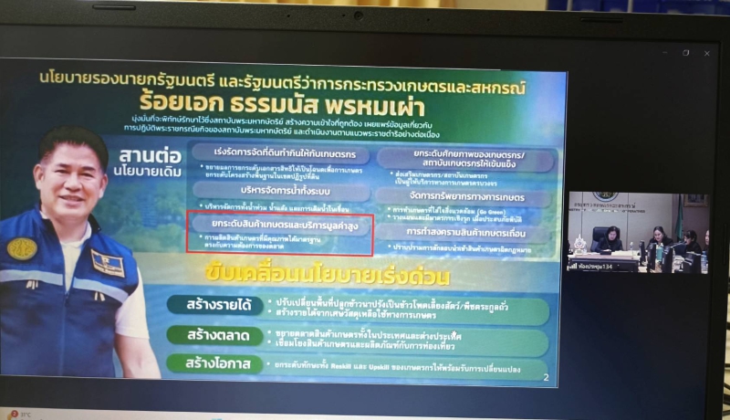 นางสาววันลีย์ เจริญวิทย์ธนเดช เกษตรและสหกรณ์จังหวัดศรีสะเกษ พร้อมด้วย นางสาวสัจจภรณ์ นิ่งนาน นักวิเคราะห์นโยบายและแผนชำนาญการพิเศษ หัวหน้ากลุ่มยุทธศาสตร์พัฒนาการเกษตร นางสาวศิภิงร์ สิริวิทโยทัย นักวิเคราะห์นโยบายและแผนชำนาญการ และนางสาวยุภาวดี มณีวงค์ เจ้าหน้าที่วิเคราะห์นโยบายและแผน ร่วมประชุมชี้แจงโครงการสินค้าเกษตรและบริการมูลค่าสูง 1 ท้องถิ่น 1 สินค้าเกษตรมูลค่าสูง และโครงการส่งเสริมและพัฒนาสินค้าเกษตรชีวภาพ (สมุนไพร) ปีงบประมาณ พ.ศ. 2569 ผ่านระบบประชุมออนไลน์ โดยมี นางสาวทัศนีย์ เมืองแก้ว รองปลัดกระทรวงเกษตรและสหกรณ์ เป็นประธานการประชุม เพื่อให้เกิดความเข้าใจแนวทางปฏิบัติงานโครงการให้เป็นไปในทิศทางเดียวกัน
