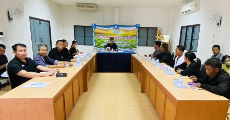 นางสาววันลีย์ เจริญวิทย์ธนเดช เกษตรและสหกรณ์จังหวัดศรีสะเกษ มอบหมายให้ จ่าสิบเอกบุญเลิศ ทองเย็น นักวิเคราะห์นโยบายและแผนชำนาญการ ร่วมการประชุมคณะทำงานขับเคลื่อนงานด้านการเกษตรระดับอำเภอ อำเภอราษีไศล ณ ห้องประชุมสำนักงานเกษตรอำเภอราษีไศล จังหวัดศรีสะเกษ เพื่อพิจารณาการรับสมัครกลุ่มแปลงใหญ่ จำนวน 2 กลุ่ม ได้แก่ 1) กลุ่มแปลงใหญ่ (ข้าว) หมู่ 1 ตำบลดู่ อำเภอราษีไศล จังหวัดศรีสะเกษ เกษตรกร 37 คน พื้นที่ 403 ไร่ 2) กลุ่มแปลงใหญ่ข้าวบ้านด่าน หมู่ 3, 4 ตำบลสร้างปี่ อำเภอราษีไศล จังหวัดศรีสะเกษ เกษตรกร 150 คน พื้นที่ 1,750 ไร่ และการจัดกิจกรรมเกี่ยวข้าวในพื้นที่ส่วนพระองค์