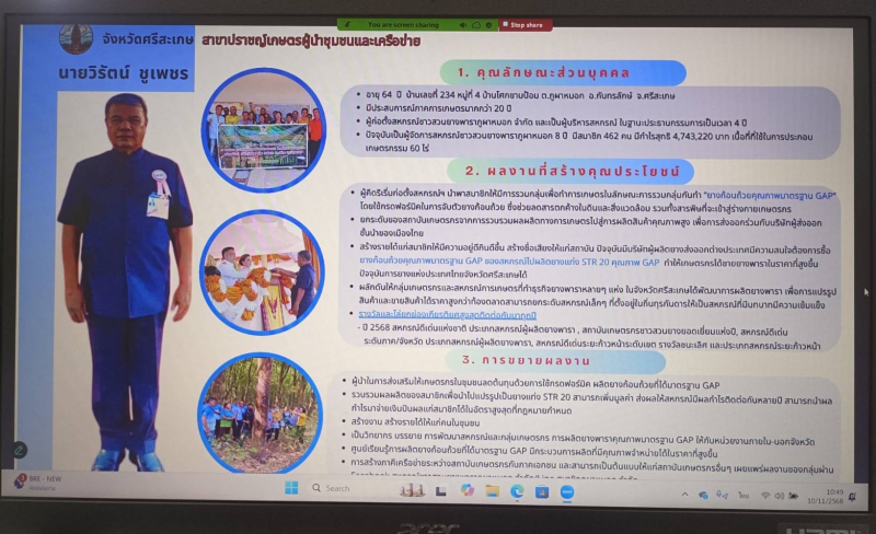 นางสาววันลีย์ เจริญวิทย์ธนเดช เกษตรและสหกรณ์จังหวัดศรีสะเกษ พร้อมด้วย นางสาวสัจจภรณ์ นิ่งนาน นักวิเคราะห์นโยบายและแผนชำนาญการพิเศษ หัวหน้ากลุ่มยุทธศาสตร์พัฒนาการเกษตร และนางสาวพจี ยงคง นักวิเคราะห์นโยบายและแผนชำนาญการ ร่วมการประชุมคณะทำงานสรรหาปราชญ์เกษตรของแผ่นดินระดับเขต (เขตตรวจราชการที่ 14) ประจำปี 2569 ผ่านระบบประชุมทางไกลออนไลน์ ณ ห้องประชุมสำนักงานเกษตรและสหกรณ์จังหวัดศรีสะเกษ ชั้น 4 ศาลากลางจังหวัดศรีสะเกษ