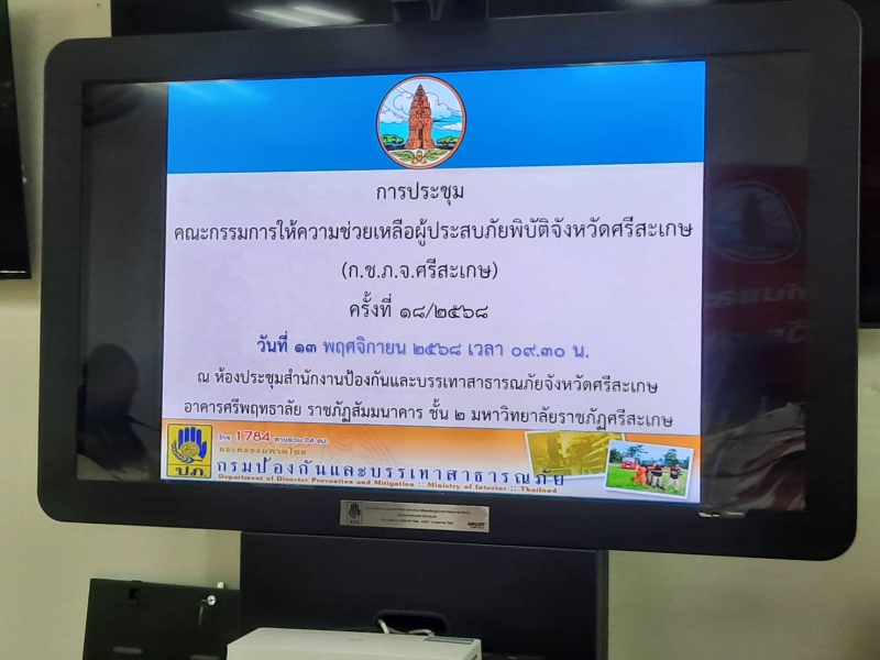 นางสาววันลีย์ เจริญวิทย์ธนเดช เกษตรและสหกรณ์จังหวัดศรีสะเกษ มอบหมายให้ นายธนาวิทย์ แสวงผล นักวิเคราะห์นโยบายและแผนชำนาญการ หัวหน้ากลุ่มช่วยเหลือเกษตรกรและโครงการพิเศษ ร่วมการประชุมคณะกรรมการให้ความช่วยเหลือผู้ประสบภัยพิบัติจังหวัดศรีสะเกษ (ก.ช.ภ.จ.ศก.) ครั้งที่ 18/2568 โดยมี นายสุริยา บุตรจินดา รองผู้ว่าราชการจังหวัดศรีสะเกษ เป็นประธานการประชุม เพื่อพิจารณาการช่วยเหลือผู้ประสบภัยพิบัติกรณีฉุกเฉิน จากกรณีเหตุการณ์สถานการณ์บริเวณชายแดนไทย - กัมพูชา ณ ห้องประชุมสำนักงานป้องกันและบรรเทาสาธารณภัยจังหวัดศรีสะเกษ ชั้น 2 อาคารศูนย์ฝึกประสบการณ์วิชาอเนกประสงค์ บุญชง วีสมหมาย โรงแรมศรีพฤทธาลัย มหาวิทยาลัยราชภัฏศรีสะเกษ