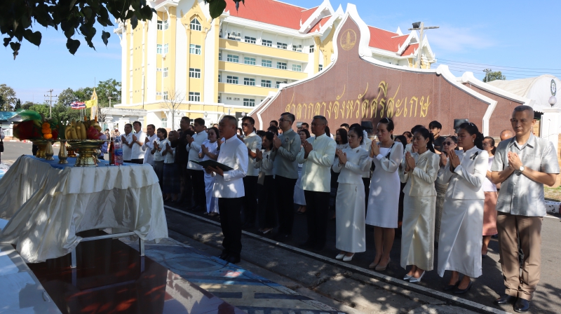 นางสาววันลีย์ เจริญวิทย์ธนเดช เกษตรและสหกรณ์จังหวัดศรีสะเกษ ร่วมพิธีสักการะสิ่งศักดิ์สิทธิ์ งานเฉลิมฉลอง 243 ปี จังหวัดศรีสะเกษ “สู่ขวัญบ้าน บายศรีเมือง รุ่งเรือง 243 ปี จังหวัดศรีสะเกษ โดยมี พลตำรวจตรี ศุภชัย ศักรินพานิชกุล ผู้บังคับการตำรวจภูธรจังหวัดศรีสะเกษ เป็นประธานในพิธี ณ ต้นโพธิ์ หน้าศาลากลางจังหวัดศรีสะเกษ