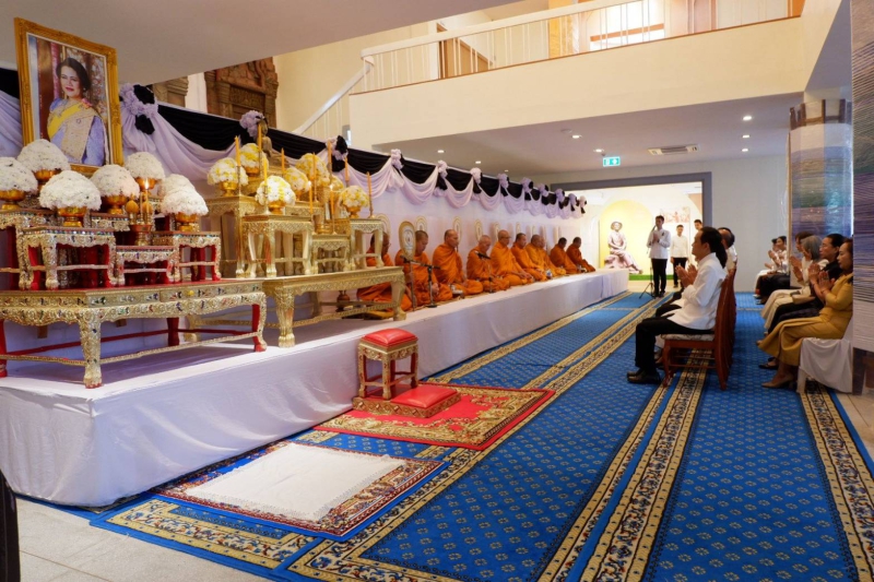 โดยมี นายอนุรัตน์ ธรรมประจำจิต ผู้ว่าราชการจังหวัดศรีสะเกษ เป็นประธานประกอบพิธีจุดธูปเทียนบูชาพระรัตนตรัย จุดธูปเทียนเครื่องทองน้อยเบื้องหน้าพระฉายาลักษณ์สมเด็จพระนางเจ้าสิริกิติ์ พระบรมราชินีนาถ พระบรมราชชนนีพันปีหลวง กรวดน้ำรับพร ร่วมพิธีทำบุญตักบาตร พระสงฆ์ 43 รูป รับบิณฑบาต