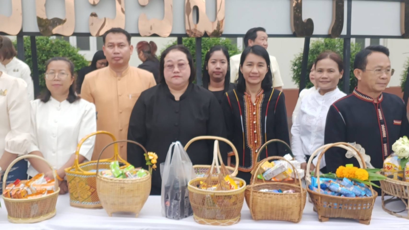 นางสาววันลีย์ เจริญวิทย์ธนเดช เกษตรและสหกรณ์จังหวัดศรีสะเกษ พร้อมด้วย นางสาวสัจจภรณ์ นิ่งนาน นักวิเคราะห์นโยบายและแผนชำนาญการพิเศษ หัวหน้ากลุ่มยุทธศาสตร์พัฒนาการเกษตร จ่าสิบเอกบุญเลิศ ทองเย็น นักวิเคราะห์นโยบายและแผนชำนาญการ นางสาวศิภิงร์ สิริวิทโยทัย นักวิเคราะห์นโยบายและแผนชำนาญการ และนางสาวยุภาวดี มณีวงค์ เจ้าหน้าที่วิเคราะห์นโยบายและแผน ร่วมพิธีทำบุญตักบาตร ถวายเป็นพระราชกุศลแด่สมเด็จพระนางเจ้าสิริกิติ์ พระบรมราชินีนาถ พระบรมราชชนนีพันปีหลวง “รวมพลังแห่งความจงรักภักดี” เนื่องในงานเฉลิมฉลอง 243 ปี จังหวัดศรีสะเกษ ณ บริเวณสนามหน้าศาลากลางจังหวัดศรีสะเกษ อำเภอเมืองศรีสะเกษ