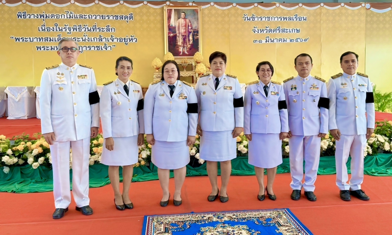 นางสาววันลีย์ เจริญวิทย์ธนเดช เกษตรและสหกรณ์จังหวัดศรีสะเกษ พร้อมด้วย นายธนาวิทย์ แสวงผล นักวิเคราะห์นโยบายและแผนชำนาญการ หัวหน้ากลุ่มช่วยเหลือเกษตรกรและโครงการพิเศษ นางบุษบา สุขศรี นักวิเคราะห์นโยบายและแผนชำนาญการ นางปัณณ์เฌอภัช ยวงจันทร์ เจ้าหน้าที่วิเคราะห์นโยบายและแผน และนางสาววิจิตรา โสภา เจ้าหน้าที่วิเคราะห์นโยบายและแผน ร่วมรัฐพิธีวันที่ระลึก “พระบาทสมเด็จพระนั่งเกล้าเจ้าอยู่หัว พระมหาเจษฎาราชเจ้า” และ “วันข้าราชการพลเรือน” ประจำปี พ.ศ. 2569 โดยมี นายอนุรัตน์ ธรรมประจำจิต ผู้ว่าราชการจังหวัดศรีสะเกษ เป็นประธานในพิธีวางพานพุ่มดอกไม้และถวายราชสดุดี เพื่อน้อมรำลึกถึงพระองค์ท่าน ต่อจากนั้นได้มอบเกียรติบัตรแก่ข้าราชการพลเรือนดีเด่น ระดับจังหวัด ประจำปี พ.ศ. 2568 และกล่าวแสดงความยินดีและให้โอวาทแก่ข้าราชการพลเรือนที่ได้รับรางวัล ณ ห้องประชุมชั้น 5 อาคารเทพา ศาลากลางจังหวัดศรีสะเกษ