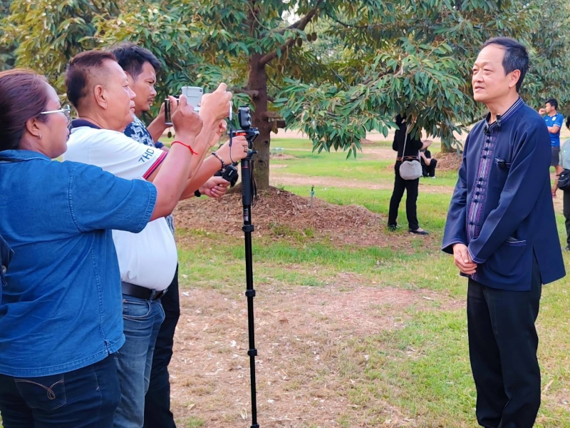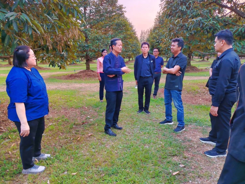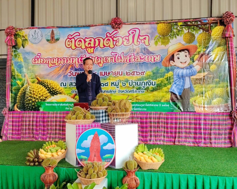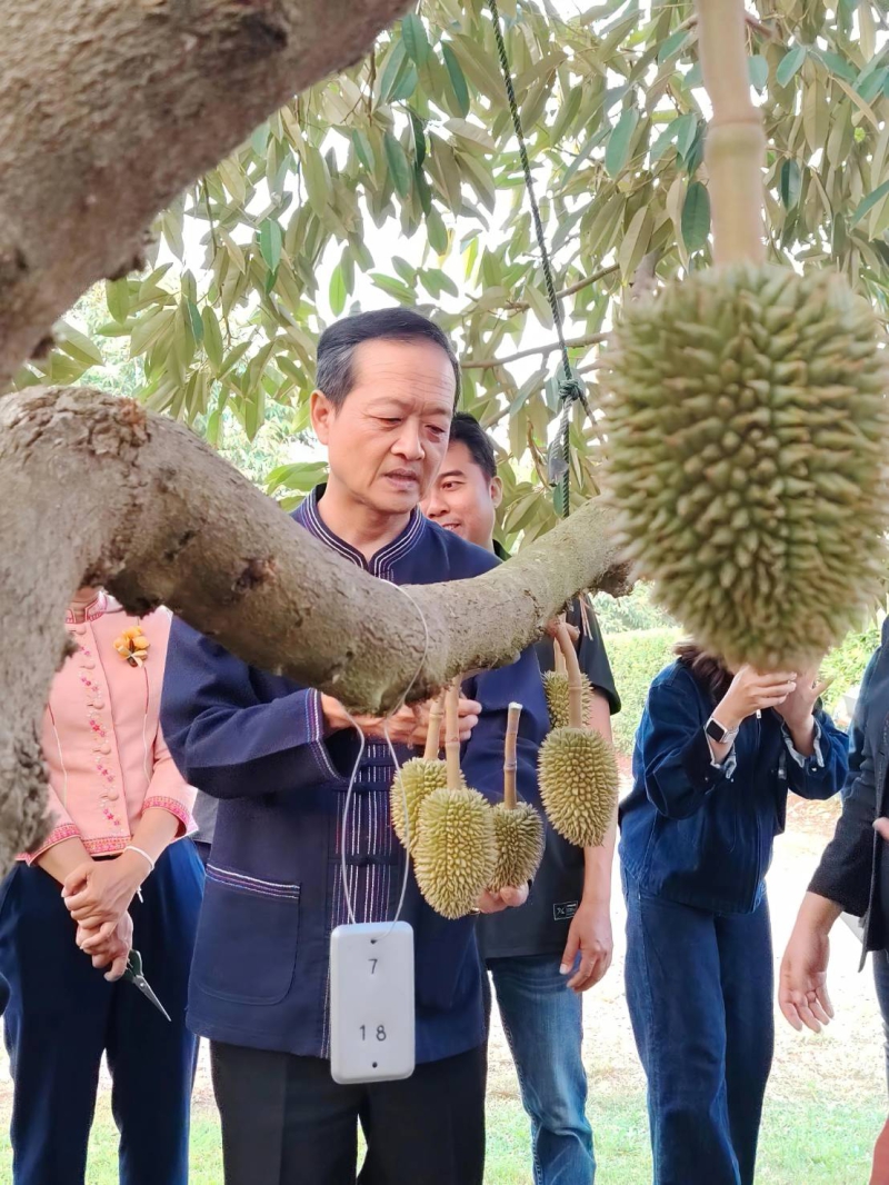 นางสาววันลีย์ เจริญวิทย์ธนเดช เกษตรและสหกรณ์จังหวัดศรีสะเกษ พร้อมด้วย นางสาวสัจจภรณ์ นิ่งนาน นักวิเคราะห์นโยบายและแผนชำนาญการพิเศษ หัวหน้ากลุ่มยุทธศาสตร์พัฒนาการเกษตร และนางสาวศิภิงร์ สิริวิทโยทัย นักวิเคราะห์นโยบายและแผนชำนาญการ ร่วมกิจกรรม “ตัดลูกด้วยใจ เพื่อคุณภาพทุเรียนภูเขาไฟศรีสะเกษ” โดยมี นายอนุรัตน์ ธรรมประจำจิต ผู้ว่าราชการจังหวัดศรีสะเกษ เป็นประธานในพิธีเปิดกิจกรรม พร้อมมอบนโยบายการขับเคลื่อนทุเรียนภูเขาไฟศรีสะเกษ พบปะพี่น้องเกษตรกรชาวสวนทุเรียน และนำคณะตัดลูกทุเรียนภูเขาไฟศรีสะเกษ ณ สวนวัชระ หมู่ที่ 6 บ้านภูเงิน ตำบลภูเงิน อำเภอกันทรลักษ์ จังหวัดศรีสะเกษ