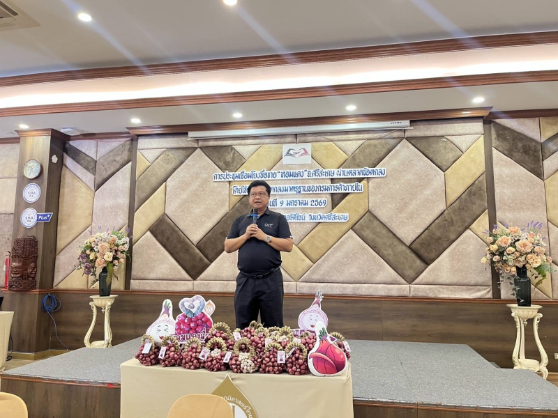 นางสาววันลีย์ เจริญวิทย์ธนเดช เกษตรและสหกรณ์จังหวัดศรีสะเกษ มอบหมายให้ นางสาวศิภิงร์ สิริวิทโยทัย นักวิเคราะห์นโยบายและแผนชำนาญการ ร่วมการประชุมเชื่อมโยงซื้อขาย “หอมแดง” จังหวัดศรีสะเกษ ผ่านตลาดข้อตกลง โดยใช้สัญญาข้อตกลงมาตรฐานของกรมการค้าภายใน ระหว่าง ผู้ขาย : กลุ่มเกษตรกร จังหวัดศรีสะเกษ และ ผู้ซื้อ : ผู้ประกอบการรับซื้อหอมแดง ณ โรงแรมแกลเลอรี ดีไซน์ โฮเทล จังหวัดศรีสะเกษ อำเภอเมืองศรีสะเกษ จังหวัดศรีสะเกษ