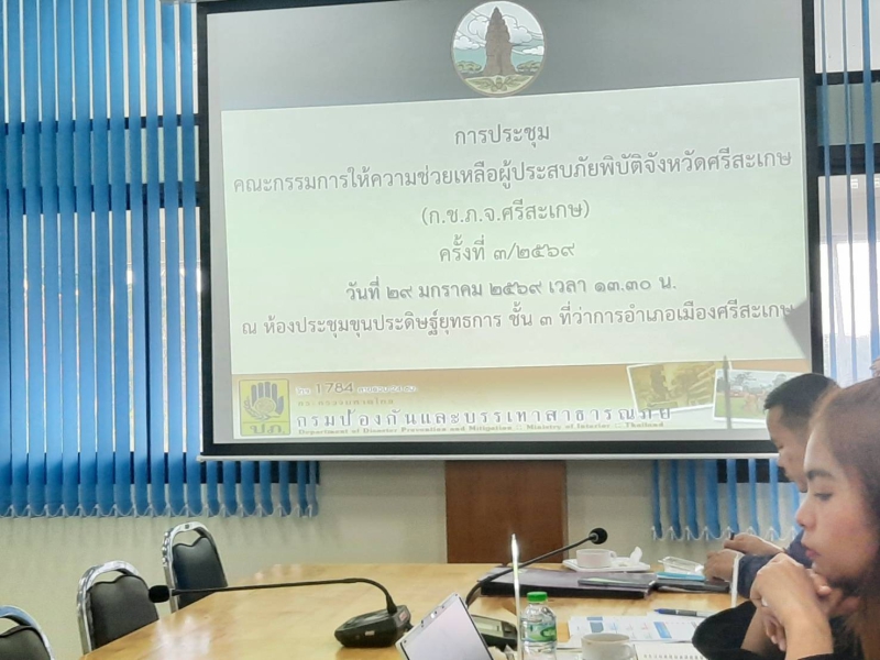 นางสาววันลีย์ เจริญวิทย์ธนเดช เกษตรและสหกรณ์จังหวัดศรีสะเกษ มอบหมายให้ นายธนาวิทย์ แสวงผล นักวิเคราะห์นโยบายและแผนชำนาญการ หัวหน้ากลุ่มช่วยเหลือเกษตรกรและโครงการพิเศษ ร่วมการประชุมคณะกรรมการให้ความช่วยเหลือผู้ประสบภัยพิบัติจังหวัดศรีสะเกษ (ก.ช.ภ.จ.ศก.) ครั้งที่ 3/2569 โดยมี นายสุกิจ เหลืองสกุลไทย รองผู้ว่าราชการจังหวัดศรีสะเกษ เป็นประธานการประชุม ณ ห้องประชุมขุนประดิษฐ์ยุทธการ ชั้น 3 ที่ว่าการอำเภอเมืองศรีสะเกษ เพื่อพิจารณาการช่วยเหลือบ้านเรือนที่เสียหายในพื้นที่ประกาศเขตพื้นที่ประสบสาธารณภัย/เขตการให้ความช่วยเหลือผู้ประสบภัยพิบัติกรณีฉุกเฉิน ภัยอื่นๆ (ภัยอันเนื่องมาจากการกระทำของกองกำลังจากนอกประเทศ) และพิจารณาให้ความช่วยเหลือผู้ประสบภัยพิบัติกรณีฉุกเฉิน ภัยอันเนื่องมากจากการกระทำของกองกำลังจากนอกประเทศ ตามมติคณะรัฐมนตรี เมื่อวันที่ 23 ธันวาคม 2568 ให้ความช่วยเหลือครัวเรือนละ 5,000 บาท ในพื้นที่อำเภอประกาศเขตพื้นที่ประสบสาธารณภัย/เขตการให้ความช่วยเหลือผู้ประสบภัยพิบัติกรณีฉุกเฉิน ภัยอื่นๆ (ภัยอันเนื่องมาจากการกระทำของกองกำลังจากนอกประเทศ)
