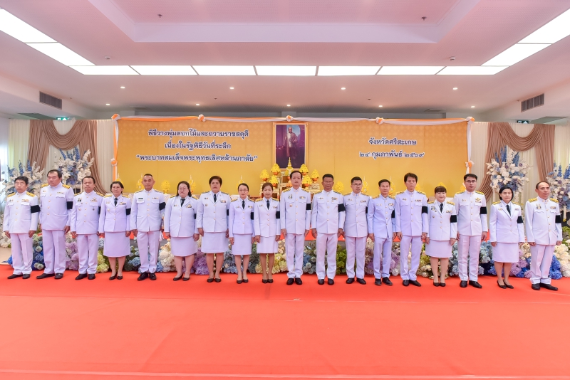 นางสาววันลีย์ เจริญวิทย์ธนเดช เกษตรและสหกรณ์จังหวัดศรีสะเกษ พร้อมด้วย นางสาวพักตร์วิภา พรหมมานนท์ เจ้าพนักงานการเงินและบัญชีชำนาญงาน หัวหน้าฝ่ายบริหารทั่วไป นางสาวกนกวรรณ บุราคร เจ้าพนักงานธุรการชำนาญงาน นางสาวชนานันท์ มันธุภา เจ้าหน้าที่บริหารงานทั่วไป และนางสาวยลดา ชิวหาทองคำ เจ้าหน้าที่ธุรการ ร่วมรัฐพิธีวันที่ระลึก “พระบาทสมเด็จพระพุทธเลิศหล้านภาลัย” โดยมี นายอนุรัตน์ ธรรมประจำจิต ผู้ว่าราชการจังหวัดศรีสะเกษ เป็นประธานในพิธี วางพานพุ่มดอกไม้ จุดธูปเทียนเครื่องทองน้อย กล่าวน้อมรำลึกในพระมหากรุณาธิคุณ หน้าพระบรมสาทิสลักษณ์ พระบาทสมเด็จพระพุทธเลิศหล้านภาลัย ณ ห้องประชุมชั้น 5 อาคารเทพา ศาลากลางจังหวัดศรีสะเกษ