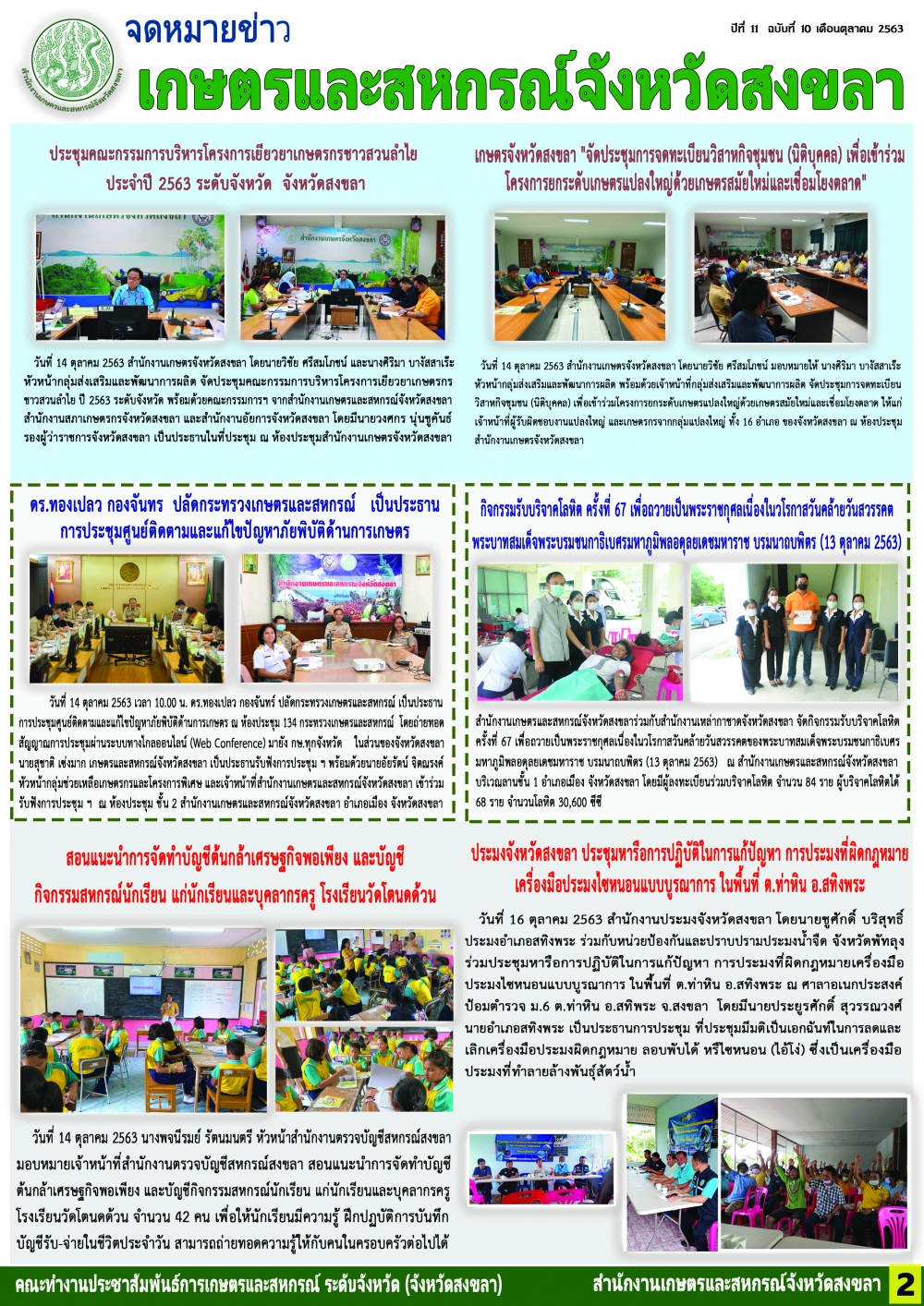 จดหมายข่าวเกษตรและสหกรณ์จังหวัดสงขลา ประจำเดือนตุลาคม 2563