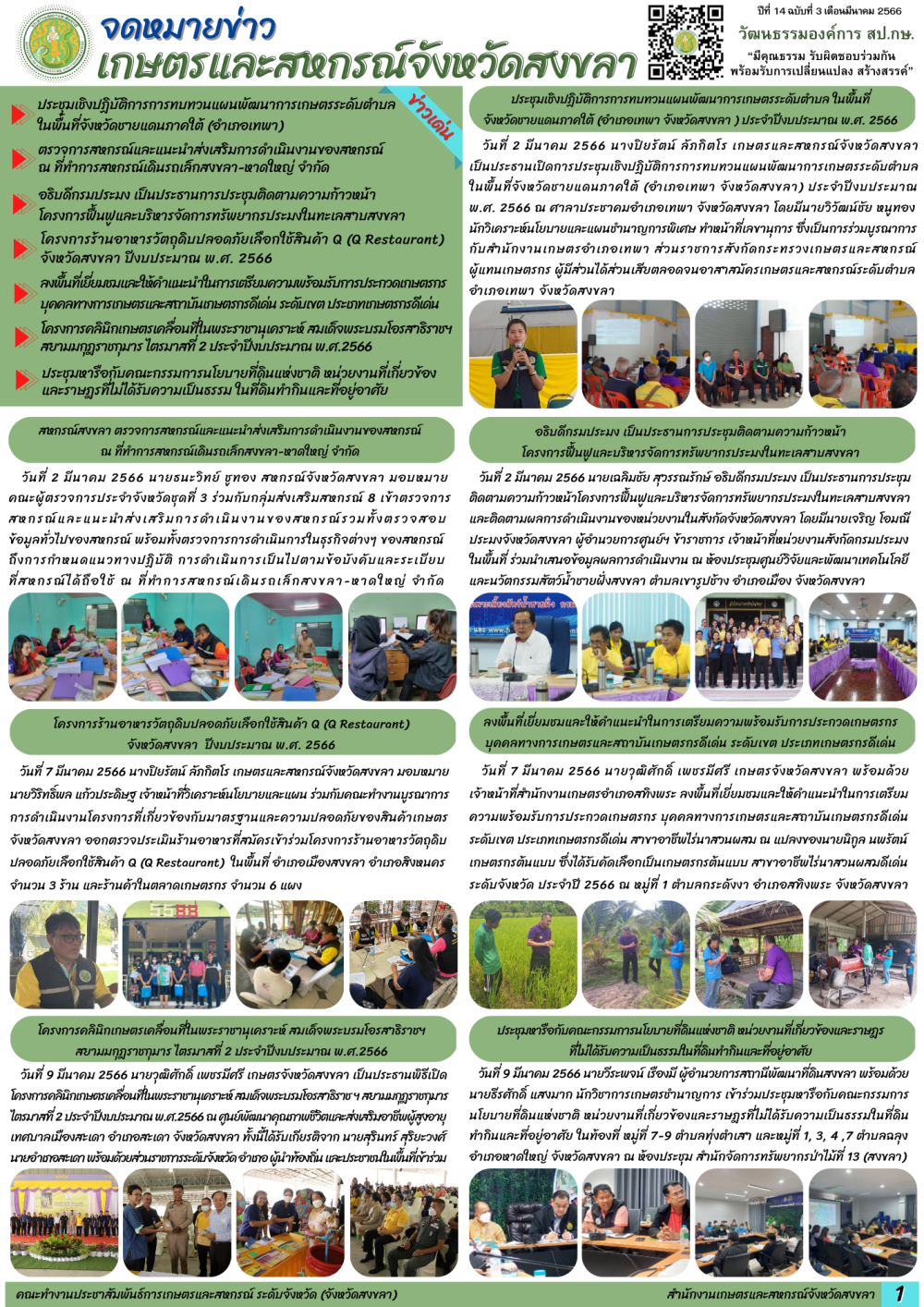 จดหมายข่าวเกษตรและสหกรณ์จังหวัดสงขลา ประจำเดือนมีนาคม 2566-2