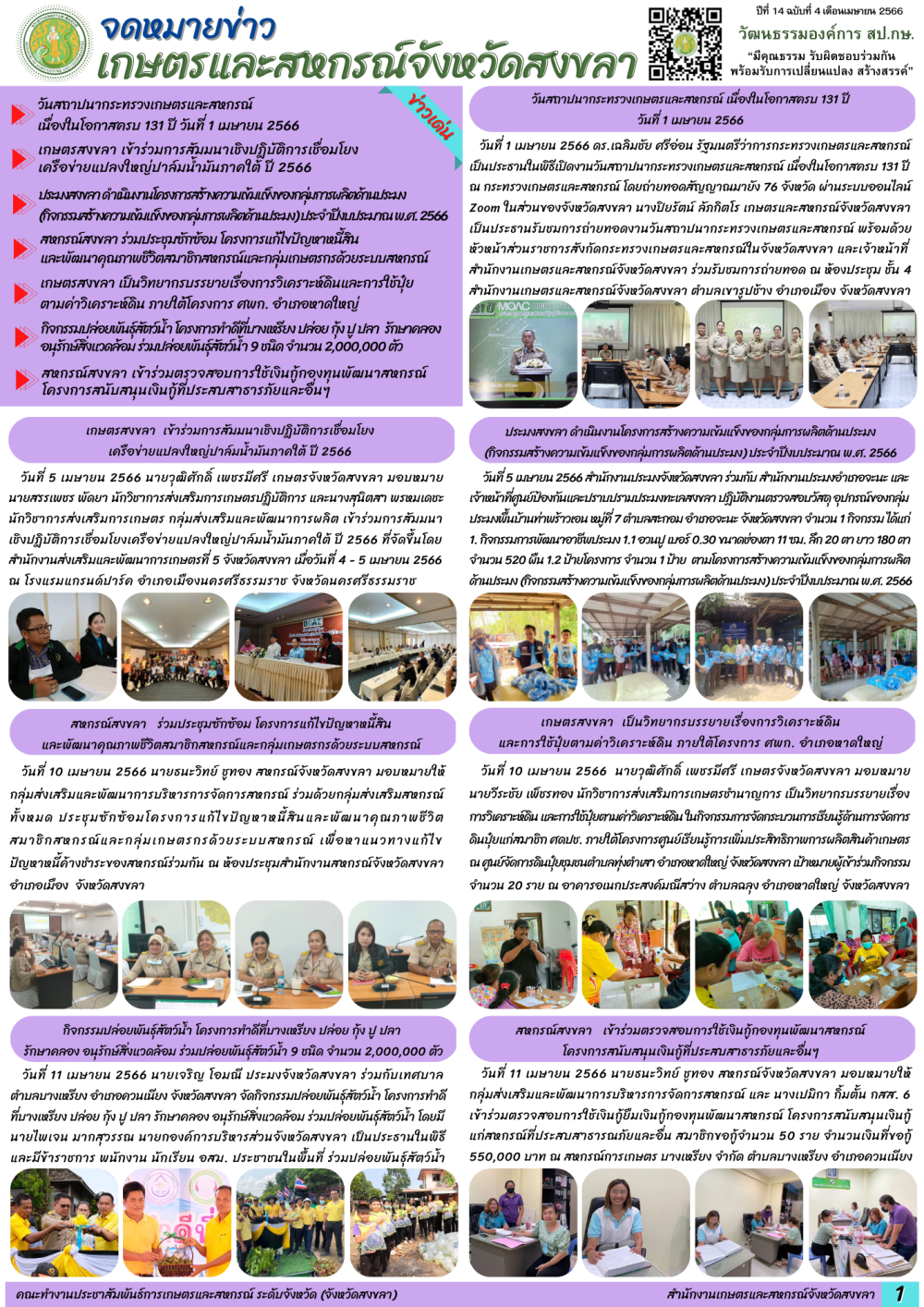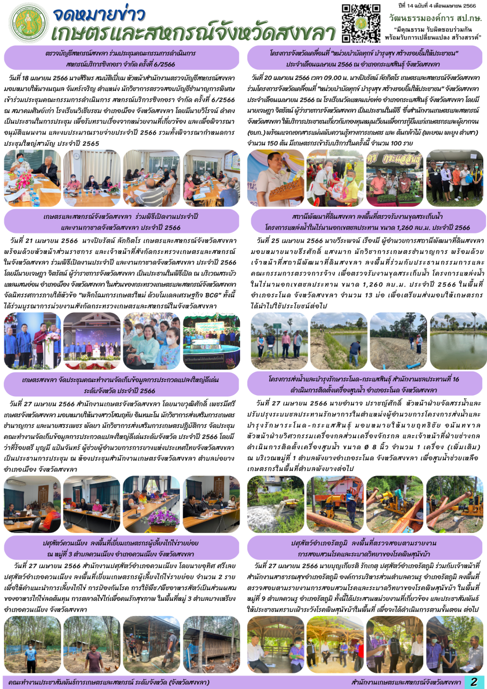 จดหมายข่าวเกษตรและสหกรณ์จังหวัดสงขลา ประจำเดือนเมษายน 2566-2