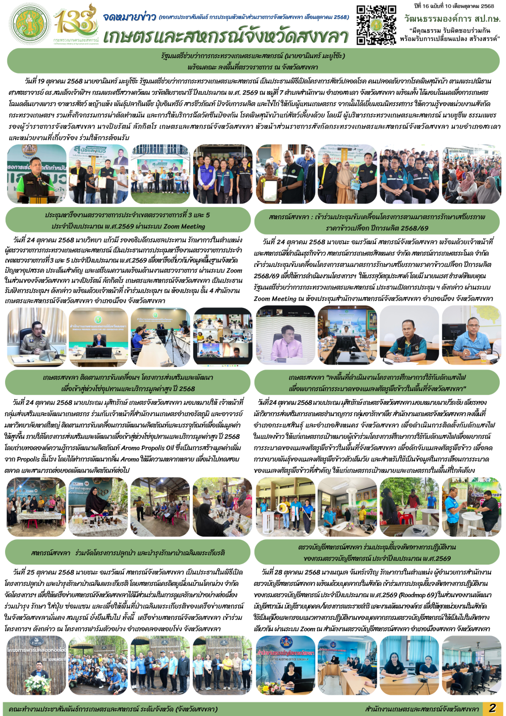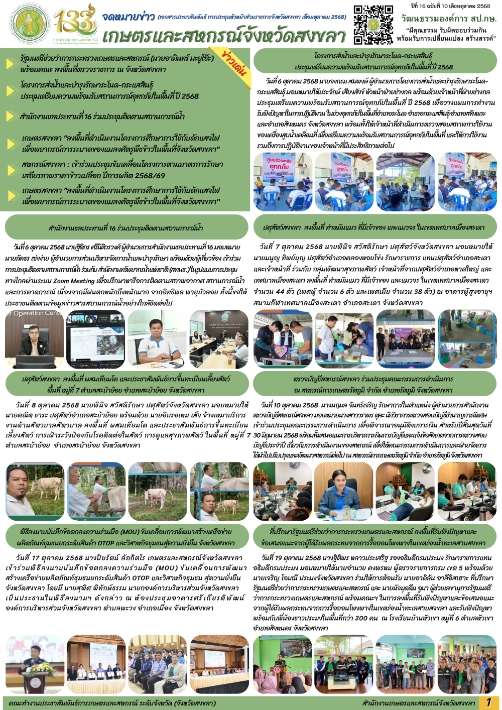 จดหมายข่าวเกษตรและสหกรณ์จังหวัดสงขลา ประจำเดือนตุลาคม 2568-2