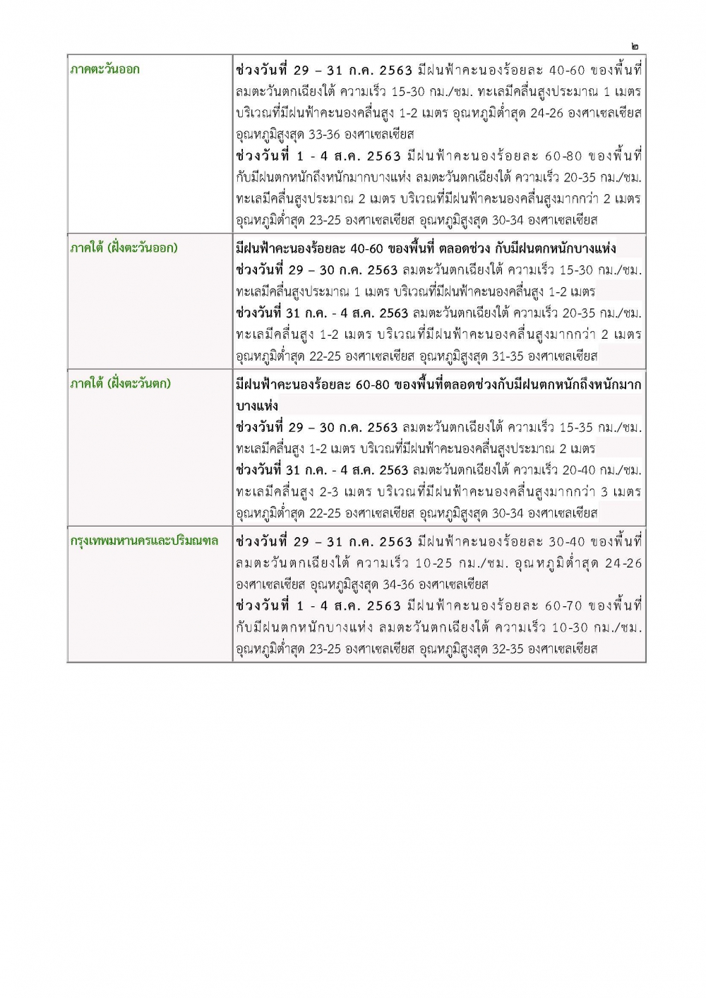 ภาคเหนือ ช่วงวันที่ 29 - 31 ก.ค. 2563 มีฝนฟ้าคะนองร้อยละ 30-40 ของพื้นที่