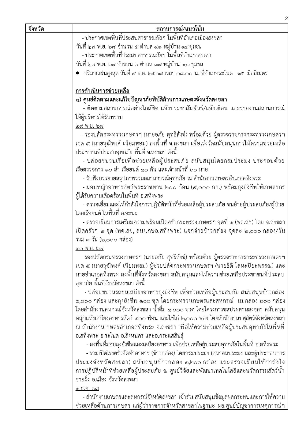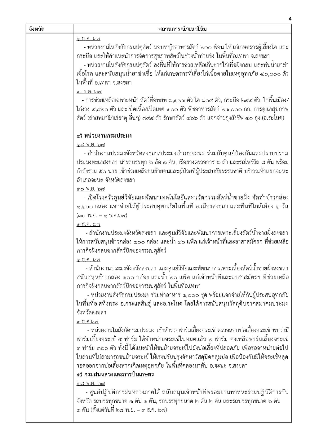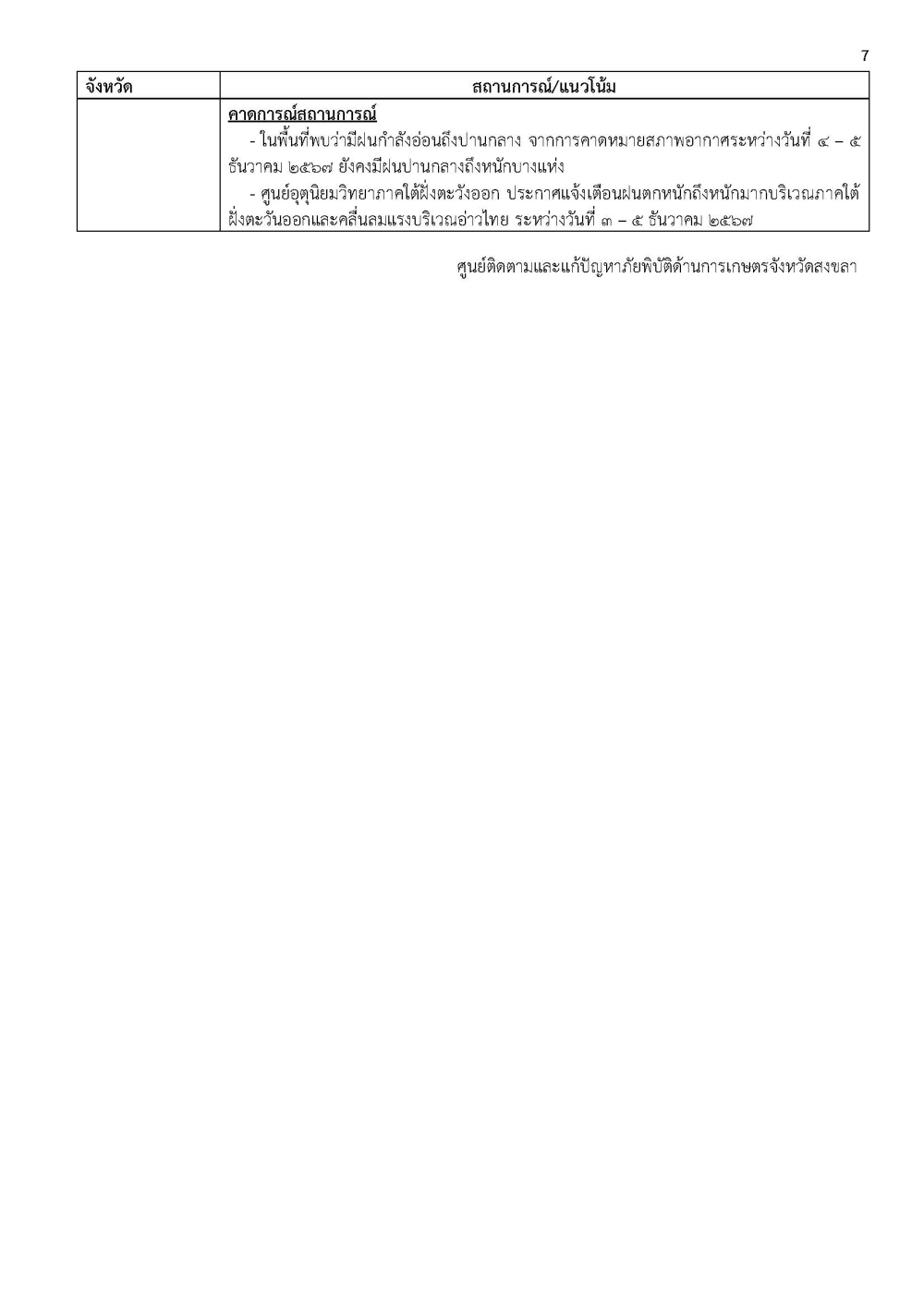 สรุปสถานการณ์ภัยพิบัติด้านการเกษตรข้อมูล ณ วันที่ 4 ธันวาคม 2567ที่มา : ศูนย์ติดตามและแก้ไขปัญหาภัยพิบัติด้านการเกษตรจังหวัดสงขลา