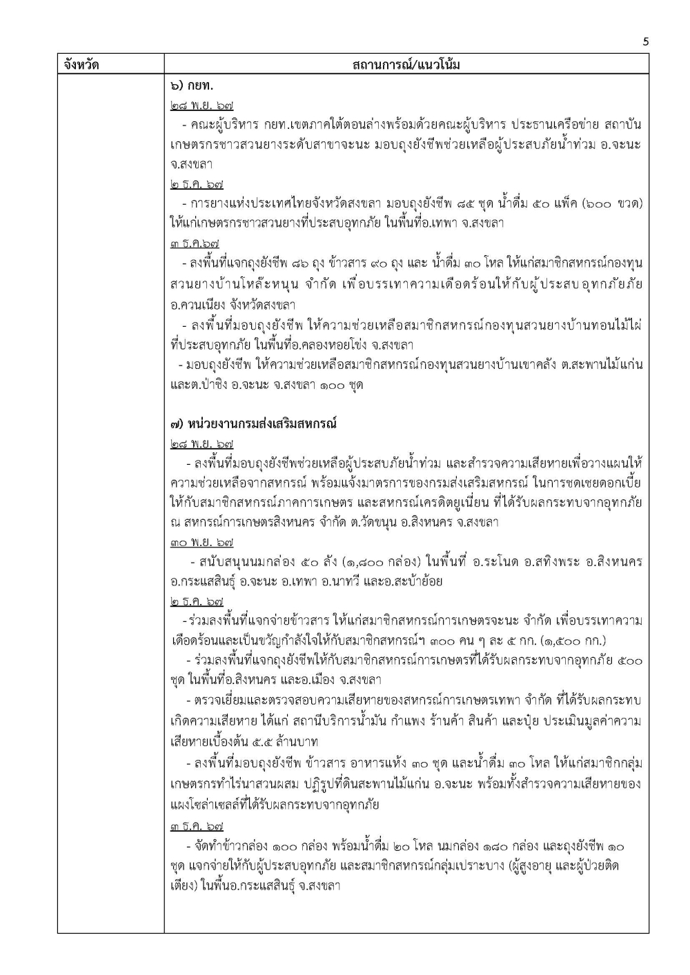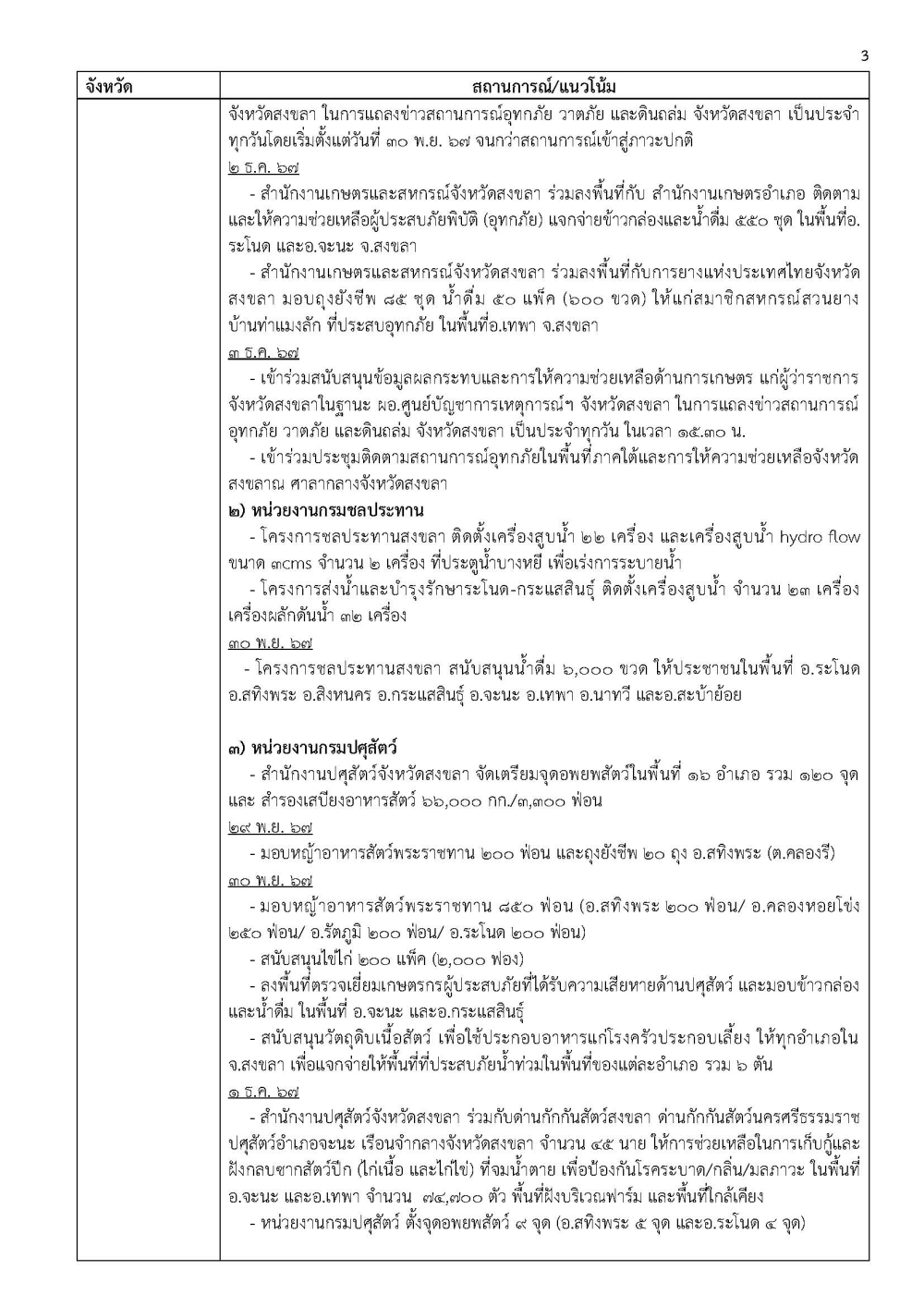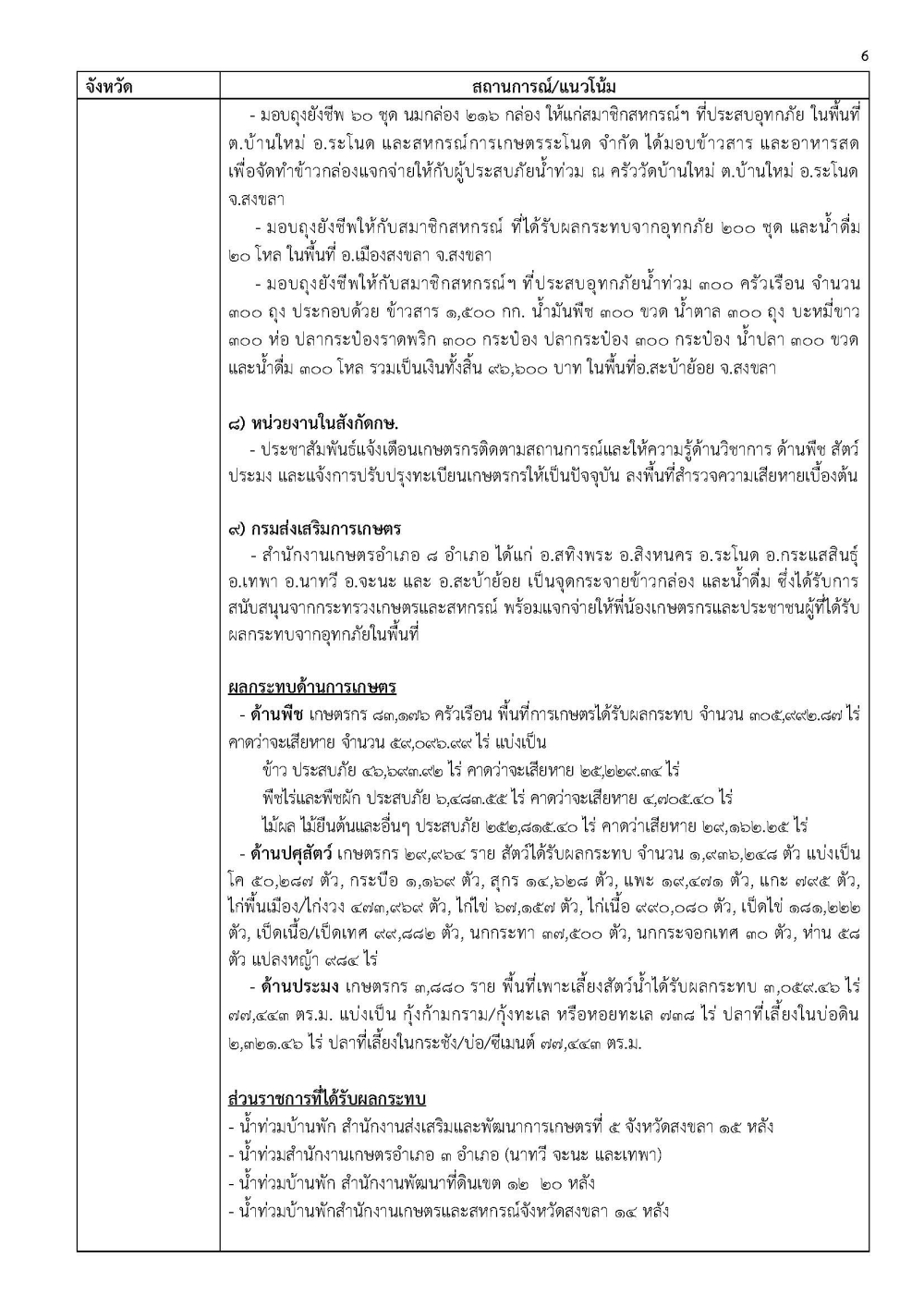 สรุปสถานการณ์ภัยพิบัติด้านการเกษตรข้อมูล ณ วันที่ 4 ธันวาคม 2567ที่มา : ศูนย์ติดตามและแก้ไขปัญหาภัยพิบัติด้านการเกษตรจังหวัดสงขลา