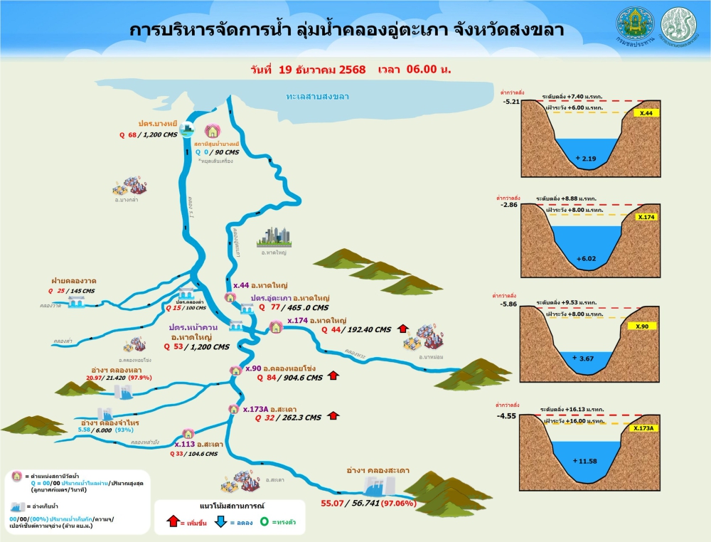 รายงานสถานการณ์น้ำ โครงการชลประทานสงขลา ประจำวันที่ 19 ธันวาคม 2568ที่มา : โครงการชลประทานสงขลา สำนักงานชลประทาน ที่ 16
