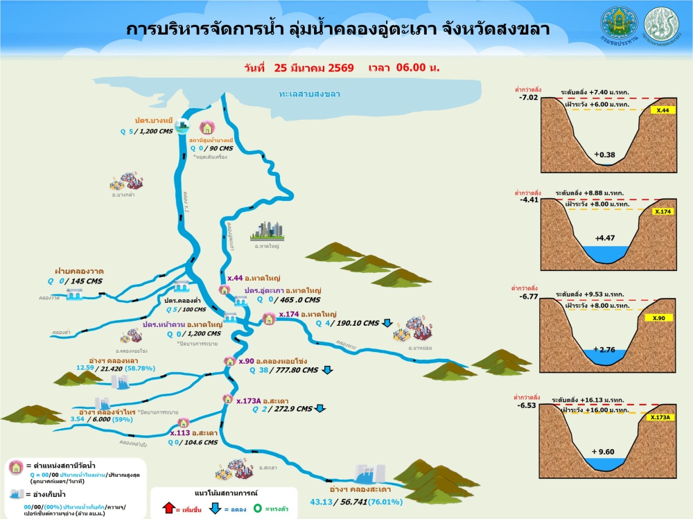 รายงานสถานการณ์น้ำ โครงการชลประทานสงขลา ประจำวันที่ 25 มีนาคม 2569ที่มา : โครงการชลประทานสงขลา สำนักงานชลประทาน ที่ 16