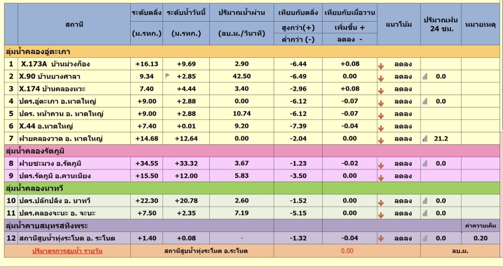 รายงานสถานการณ์น้ำ ประจำวันที่ 7 เมษายน 2569ที่มา : โครงการชลประทานสงขลา สำนักงานชลประทาน ที่ 16ที่มา : ศูนย์อุตุนิยมวิทยาภาคใต้ฝั่งตะวันออกจัดทำโดยกลุ่มสารสนเทศการเกษตร