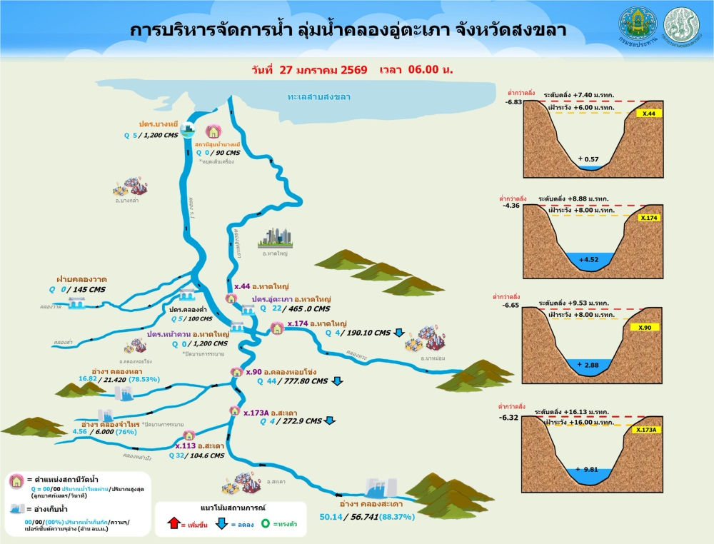 รายงานสถานการณ์น้ำ โครงการชลประทานสงขลา ประจำวันที่ 27 มกราคม 2569ที่มา : โครงการชลประทานสงขลา สำนักงานชลประทาน ที่ 16
