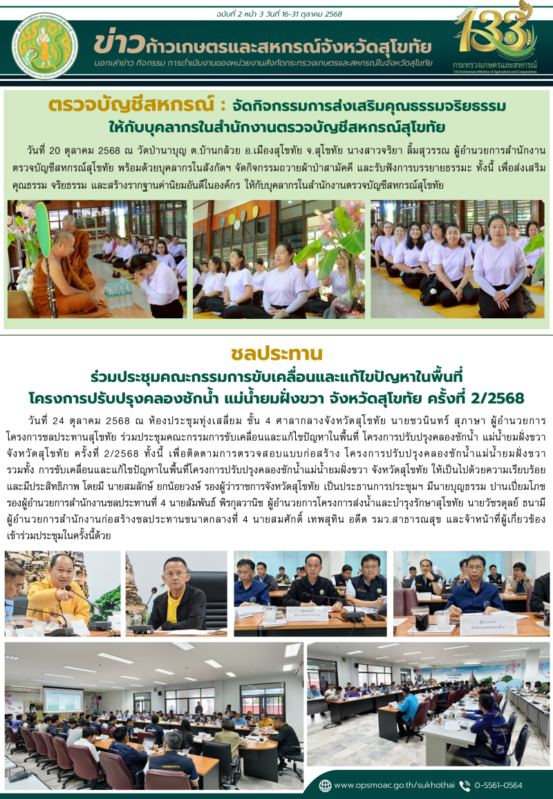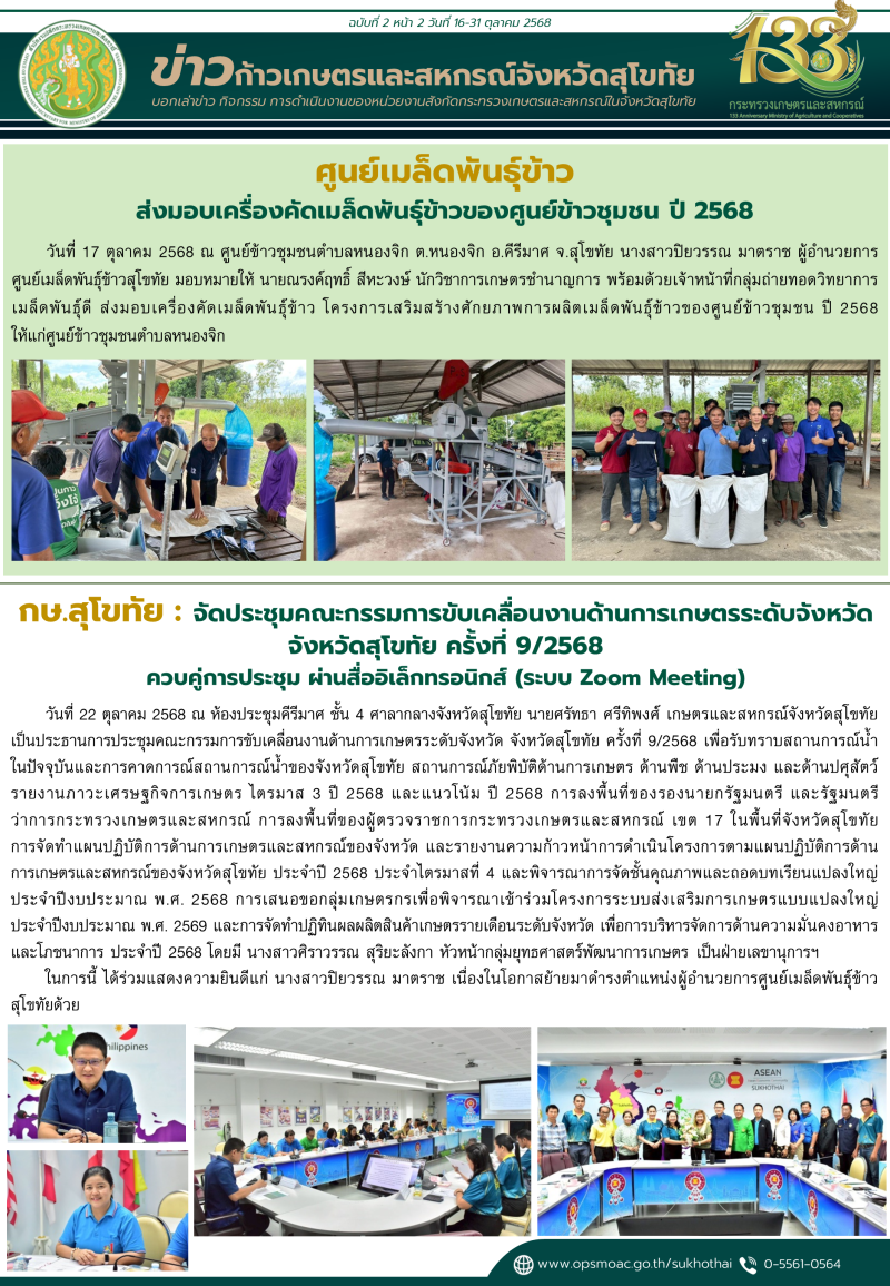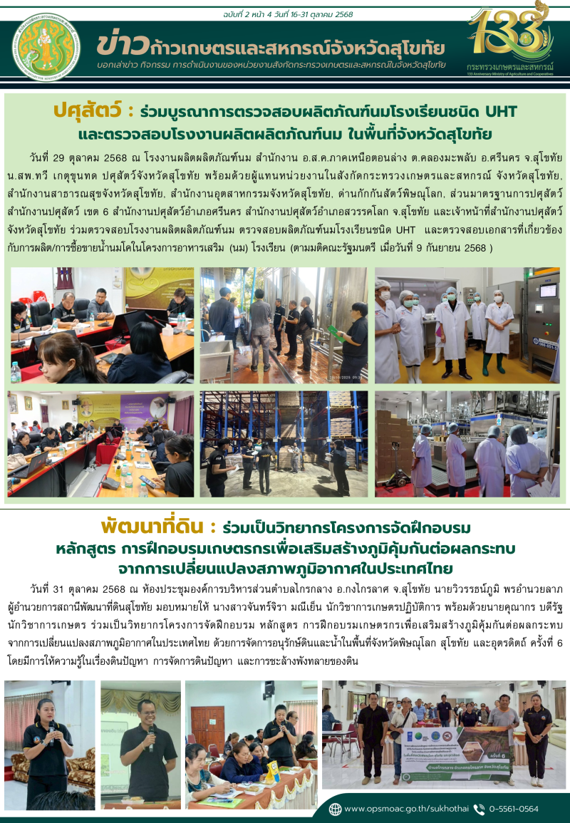 "ข่าวก้าวเกษตร" กิจกรรมของหน่วยงานในสังกัดกระทรวงเกษตรและสหกรณ์ จังหวัดสุโขทัย ช่วงระหว่างวันที่ 16-31 ตุลาคม 2568