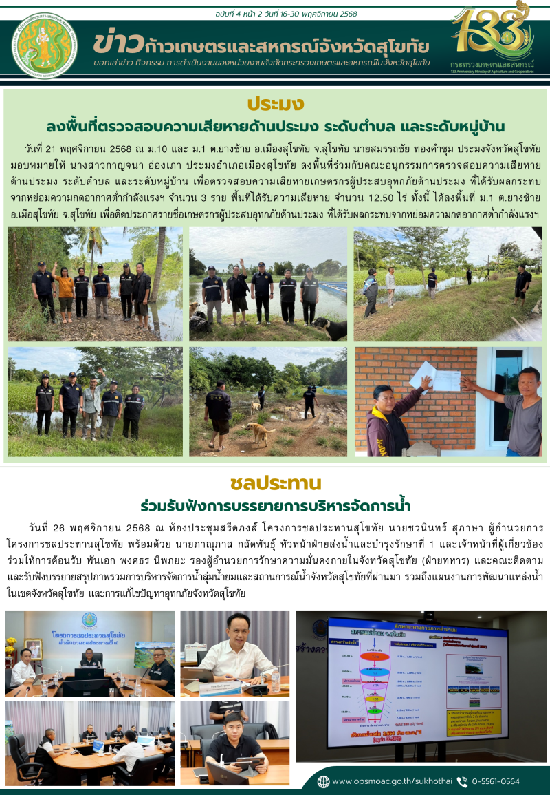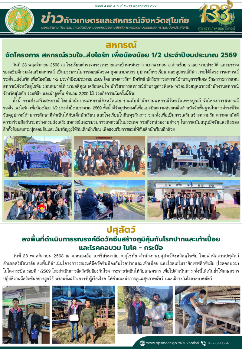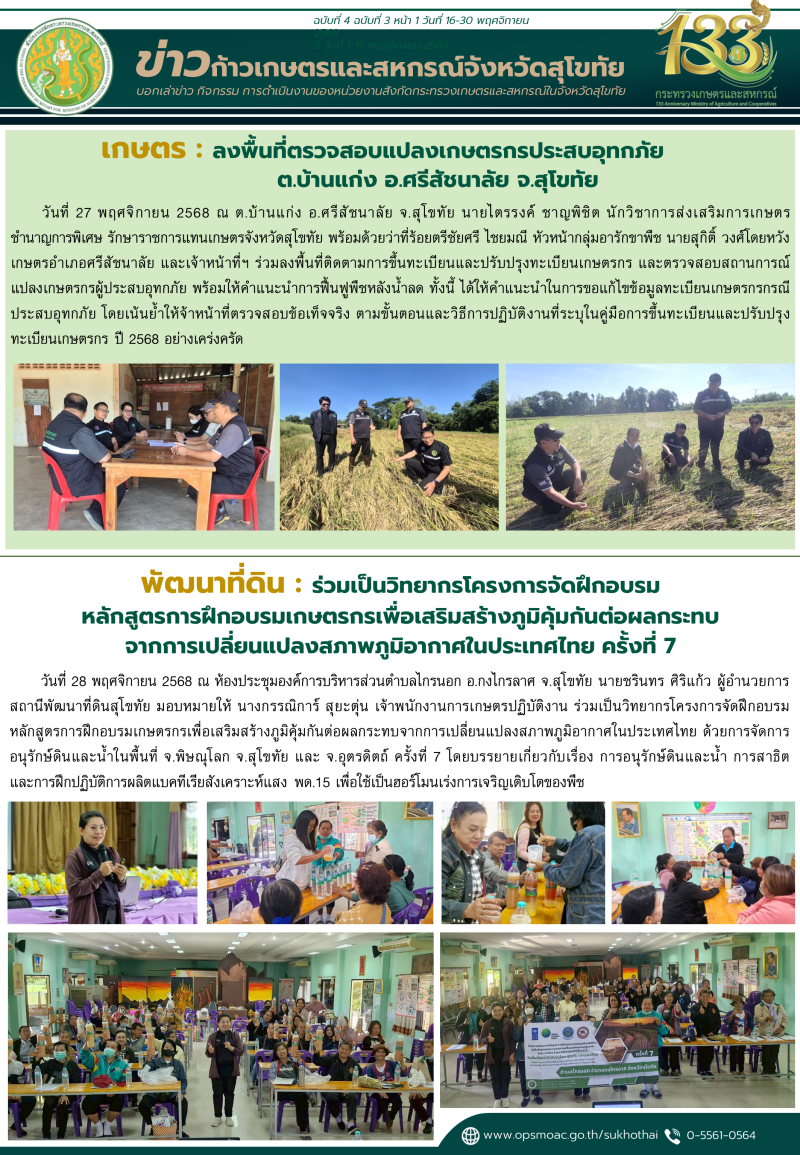 "ข่าวก้าวเกษตร" กิจกรรมของหน่วยงานในสังกัดกระทรวงเกษตรและสหกรณ์ จังหวัดสุโขทัย ช่วงระหว่างวันที่ 16-30 พฤศจิกายน 2568