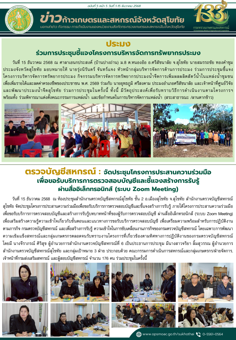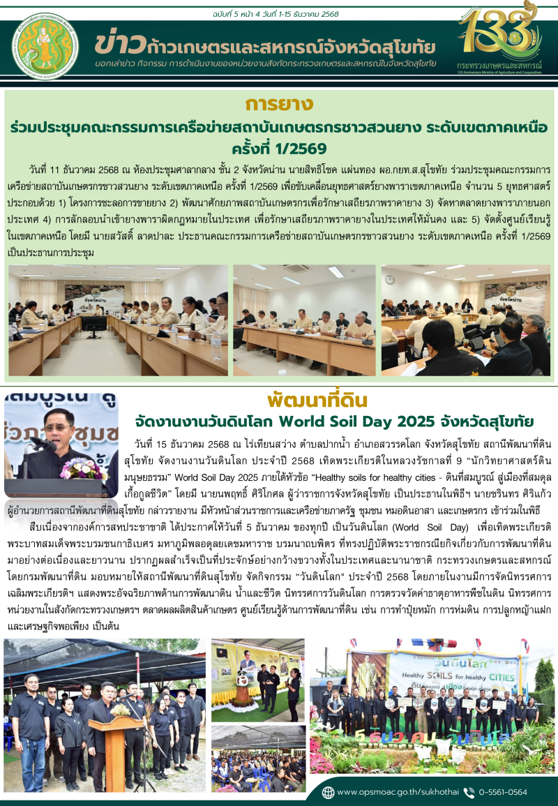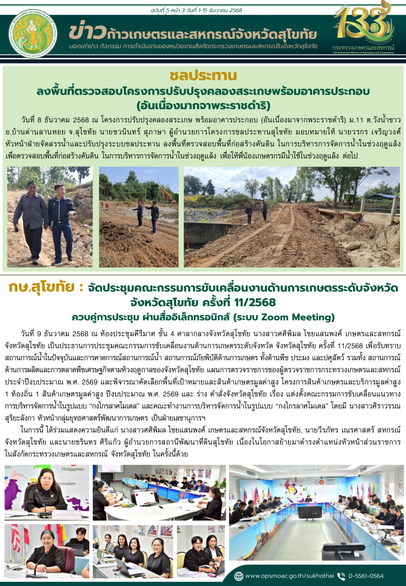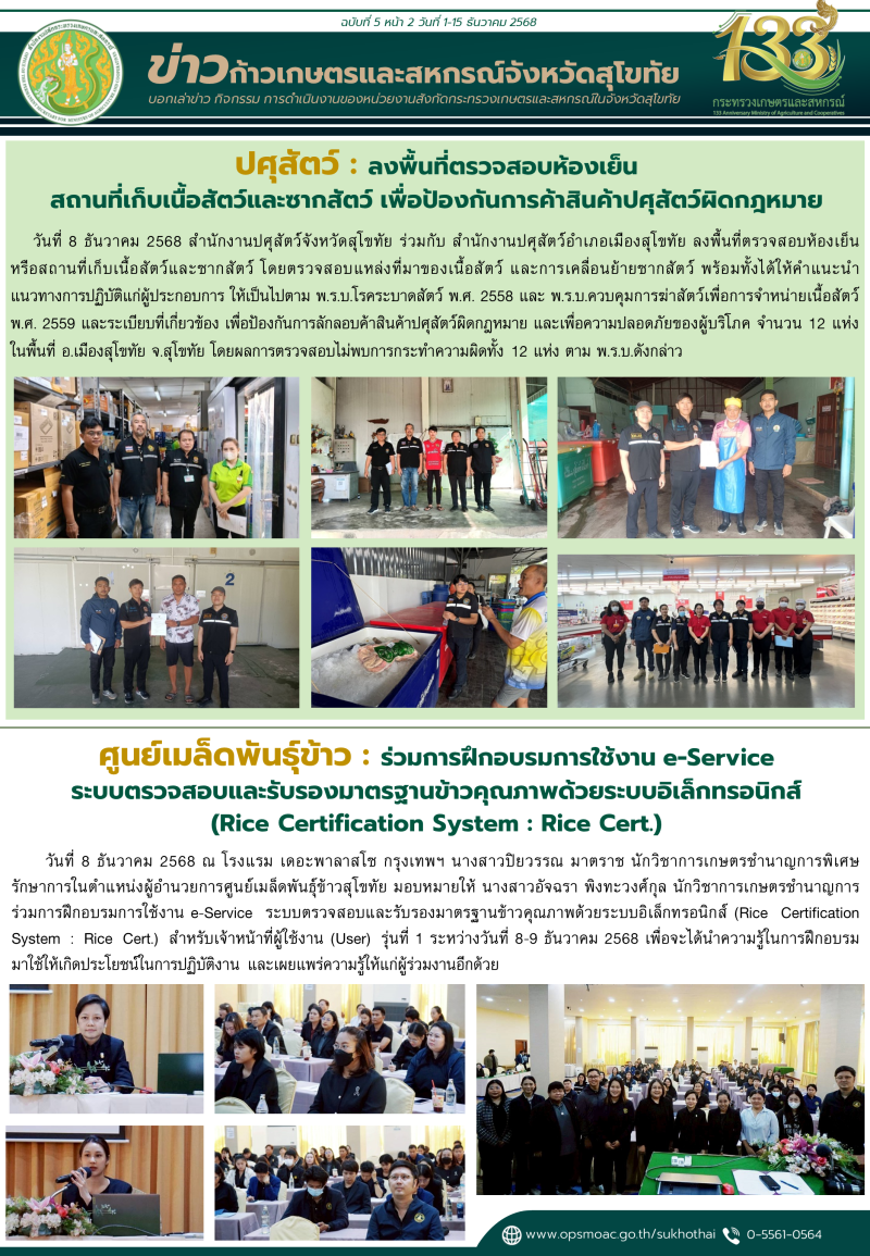 "ข่าวก้าวเกษตร" กิจกรรมของหน่วยงานในสังกัดกระทรวงเกษตรและสหกรณ์ จังหวัดสุโขทัย ช่วงระหว่างวันที่ 1-15 ธันวาคม 2568
