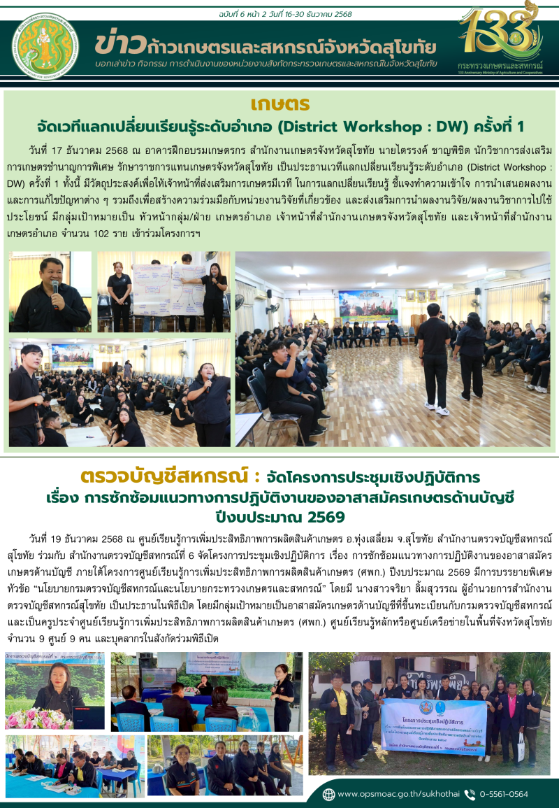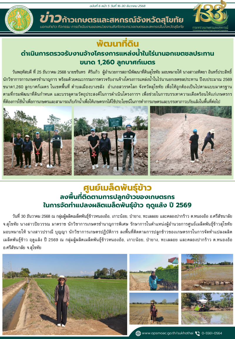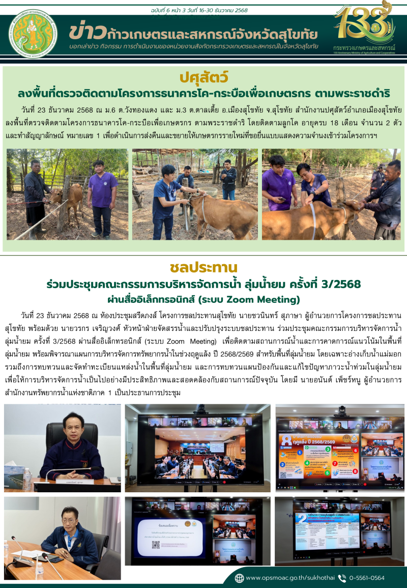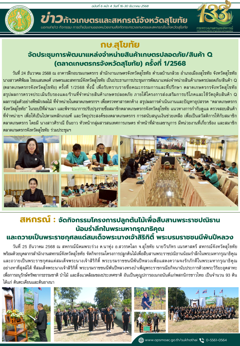 "ข่าวก้าวเกษตร" กิจกรรมของหน่วยงานในสังกัดกระทรวงเกษตรและสหกรณ์ จังหวัดสุโขทัย ช่วงระหว่างวันที่ 16-31 ธันวาคม 2568