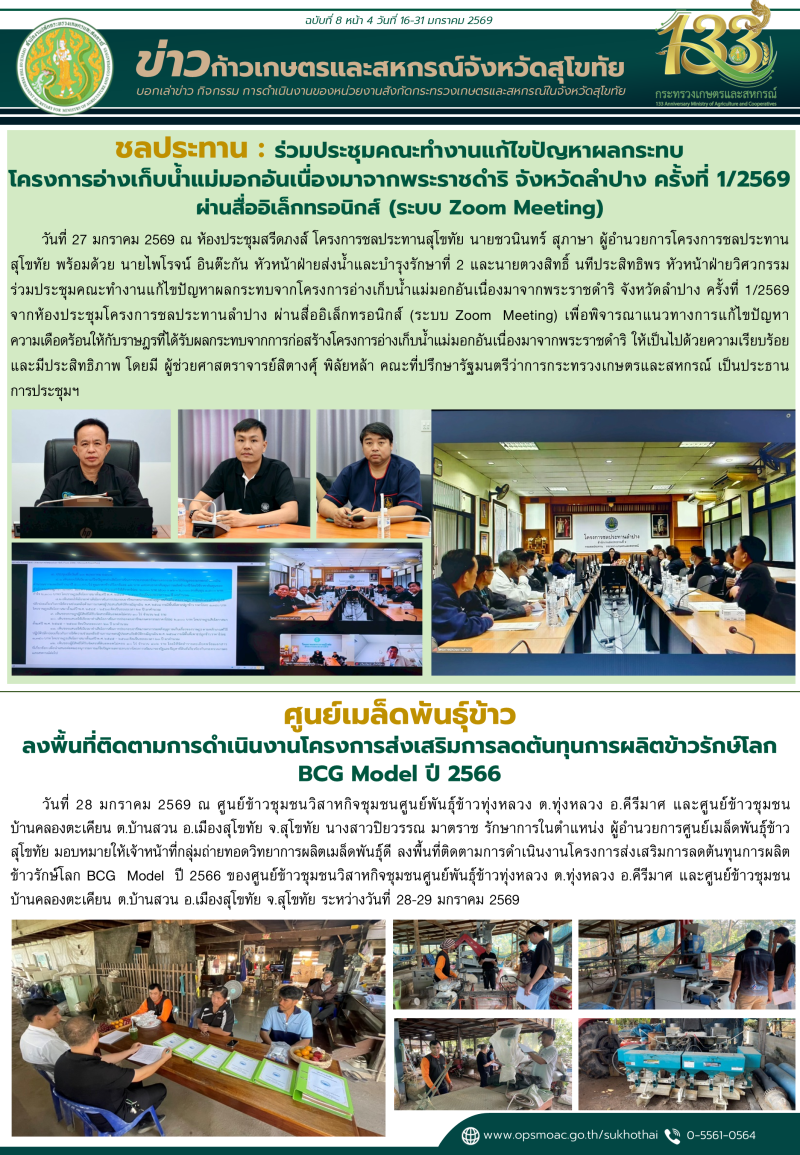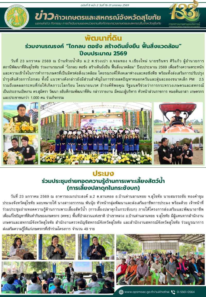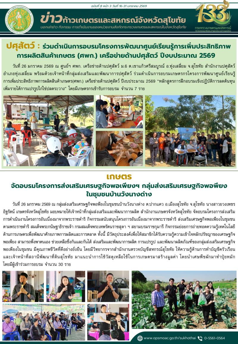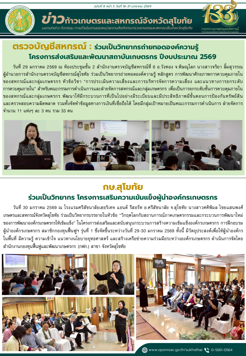 "ข่าวก้าวเกษตร" กิจกรรมของหน่วยงานในสังกัดกระทรวงเกษตรและสหกรณ์ จังหวัดสุโขทัย ช่วงระหว่างวันที่ 16-31 มกราคม 2569