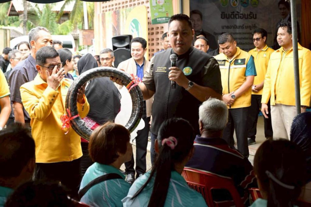 โอกาสนี้ รมช.อามินทร์ ได้มอบปัจจัยการผลิตให้แก่ผู้แทนเกษตรกร เพื่อเป็นขวัญกำลังใจและสนับสนุนการพัฒนาอาชีพของพี่น้องเกษตรกรชาวสวนยางในพื้นที่ อาทิ มอบเงินทุนจากกองทุนพัฒนาสหกรณ์ให้กับสหกรณ์ จำนวน 1.5 ล้านบาท มอบโฉนดต้นยาง จำนวน 10 ราย มอบน้ำหมักชีวภาพปลาหมอคางดำ จำนวน 10 ราย รวมทั้งมอบพันธุ์ปลาน้ำจืด ถุงยังชีพด้านปศุสัตว์ ไข่ไก่ ปุ๋ยหมัก เมล็ดพันธุ์ผักและปุ๋ย และมอบคิวอาร์โค้ดรายแปลง สำหรับเกษตรกรทุเรียนทรายขาว GI จำนวน 40 รายอีกด้วย