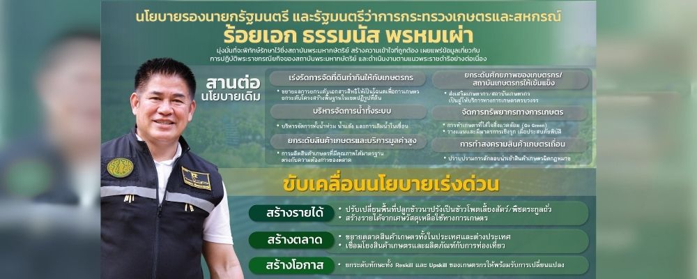 นโยบายรองนายกรัฐมนตรีและรัฐมนตรีว่าการกระทรวงเกษตรและสหกรณ์