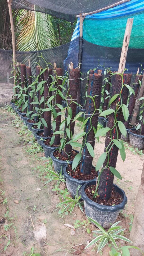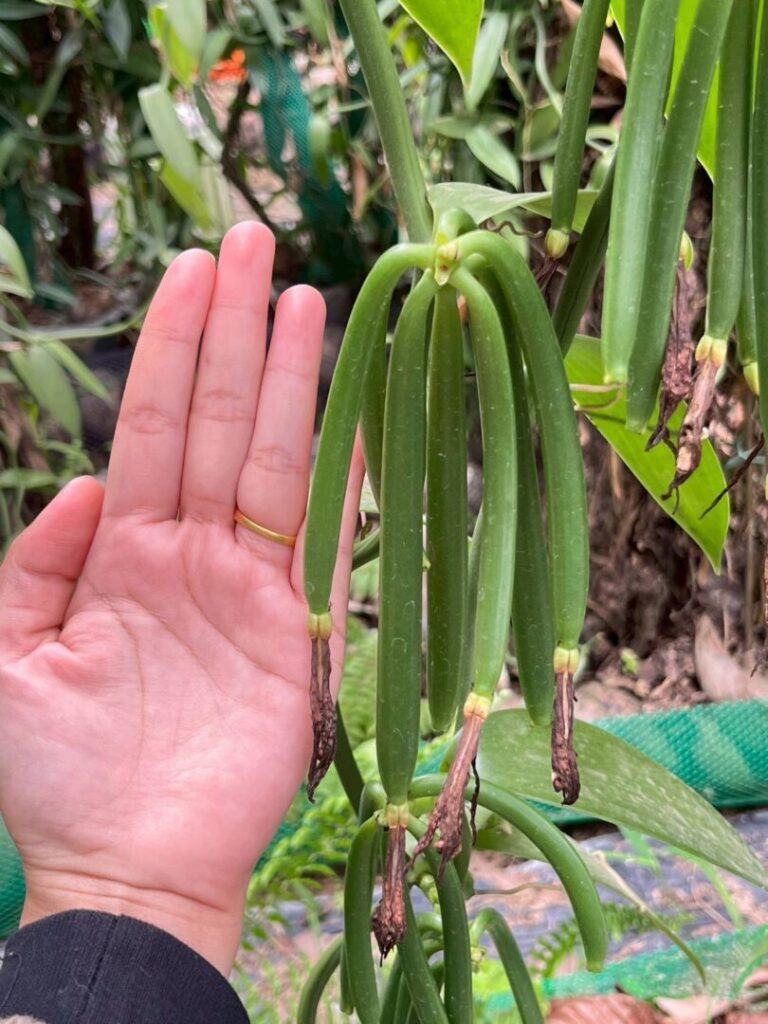 ต่างกับ “วานิลลา” ที่ไปได้สวยและให้ผลผลิตดีเกินคาด จึงหันมาทุ่มเทกับการปลูกวานิลลาอย่างจริงจัง และมีแผนจะขยายพื้นที่ปลูกเพิ่มเติมในอนาคต ปัจจุบันที่สวนใช้พื้นที่เพียง 1 งาน ในการปลูกวานิลลาได้ประมาณ 300-400 ต้น โดยแบ่งการปลูกเป็น 2 รูปแบบ คือ ปลูกในกระถางและปลูกลงดิน ใช้ระยะชิดเพียง 1×1 เมตร