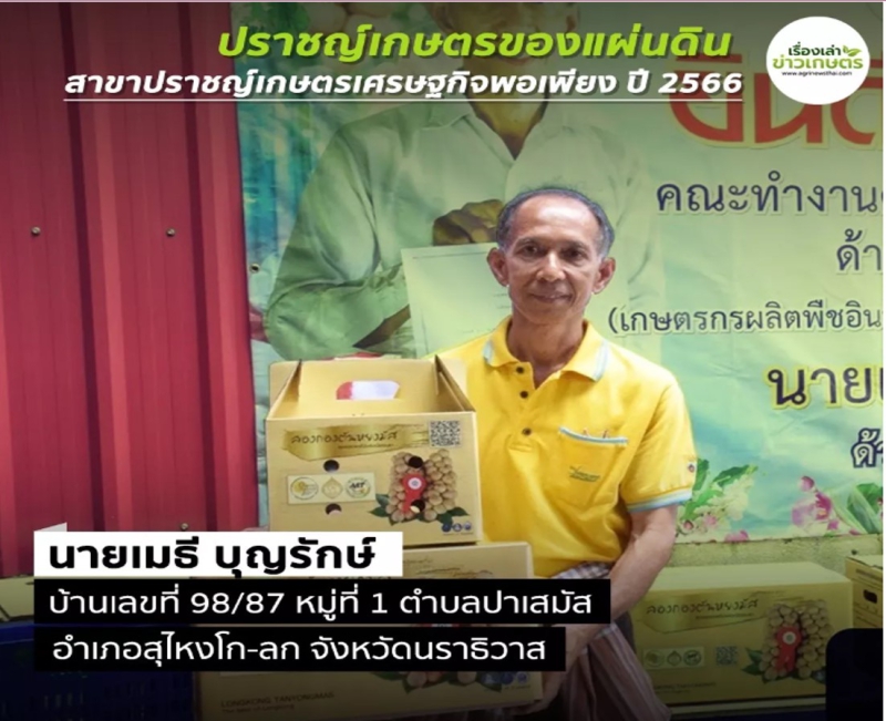 1) สาขาปราชญ์เศรษฐกิจพอเพียง ได้แก่ นายเมธี บุญรักษ์ จังหวัดนราธิวาส