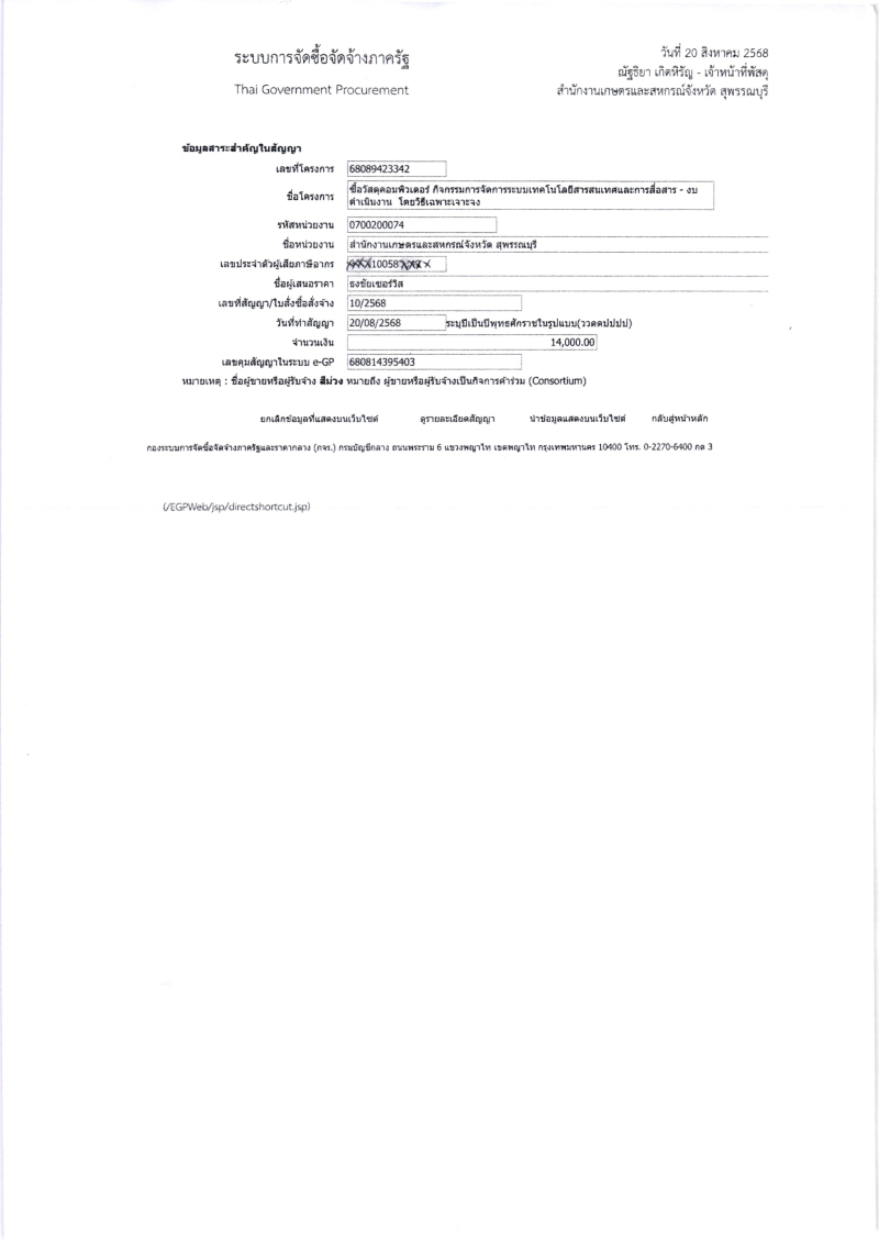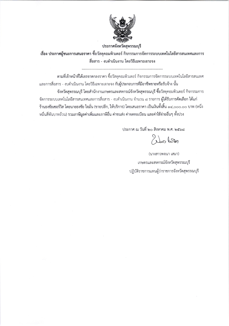 ประกาศผู้ชนะการเสนอราคา ซื้อวัสดุคอมพิวเตอร์ กิจกรรมการจัดการระบบเทคโนโลยีสารสนเทศและการสื่อสาร (งบดำเนินงาน)