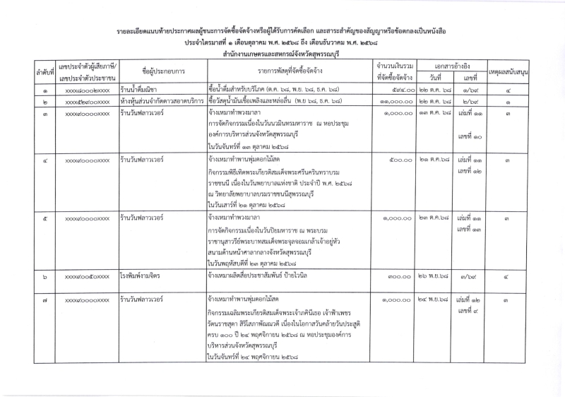 ประกาศผู้ชนะการจัดซื้อจัดจ้างหรือผู้ได้รับการคัดเลือกและสาระสำคัญของสัญญาหรือข้อตกลงเป็นหนังสือ ประจำไตรมาสที่ 1 (เดือนตุลาคม พ.ศ.2568 ถึง เดือนธันวาคม พ.ศ. 2568)