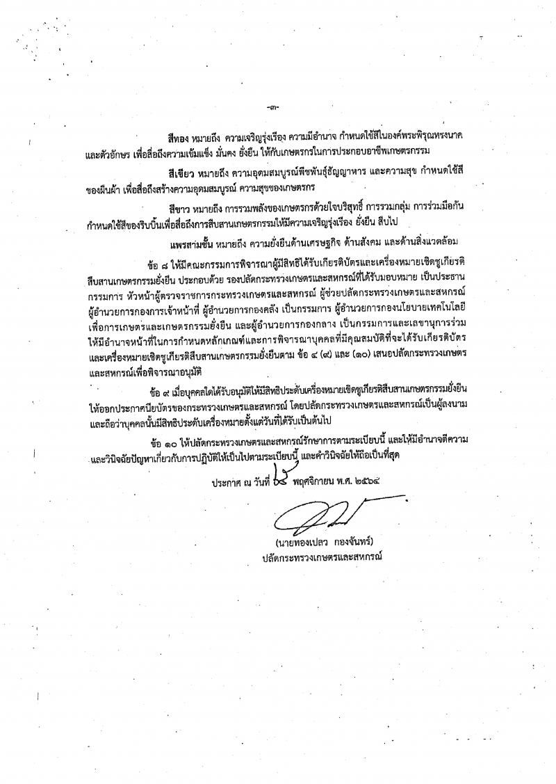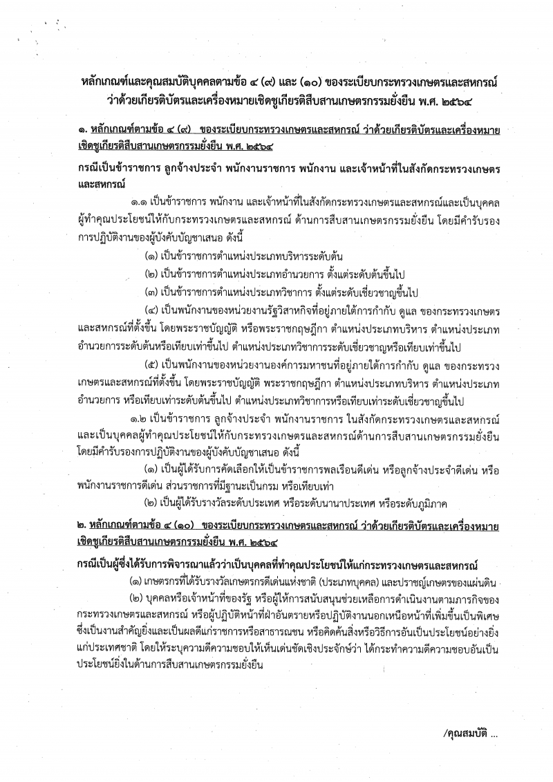 ระเบียบกระทรวงเกษตรและสหกรณ์ว่าด้วยเครื่องหมายเชิดชูเกียรติสืบสานเกษตรกรรมยั่งยืน พ.ศ. 2564 และการขอรับเกียรติบัตรและเครื่องหมายเชิดชูเกียรติฯ