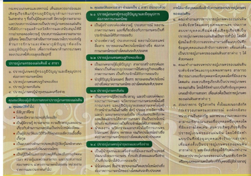 สาขา ปราชญ์เกษตรผู้ทรงภูมิปัญญาและมีคุณูปการต่อภาคการเกษตรไทย