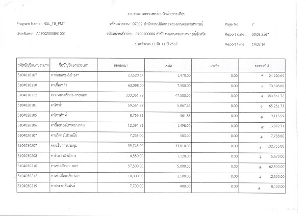 สำนักงานเกษตรและสหกรณ์จังหวัดสุราษฎร์ธานี ขอส่งรายงานงบทดลองประจำเดือนจากระบบ GFMIS ปีงบประมาณ พ.ศ. 2567 ประจำเดือน สิงหาคม 2567 รายงานงบทดลองหน่วยเบิกจ่ายรายเดือน รหัสหน่วยงาน 0702 สนง.ปลัดกระทรวงเกษตรและสหกรณ์ รหัสหน่วยเบิกจ่าย 000000700200084 สำนักงานเกษตรและสหกรณ์จังหวัด ประจำงวด 11 ปี 2567 ตามรายละเอียดที่ส่งมาพร้อมนี้