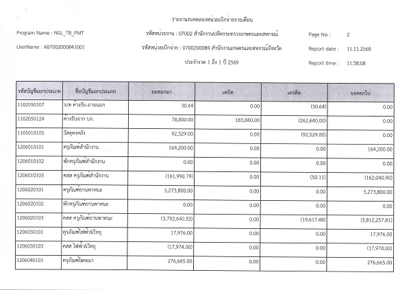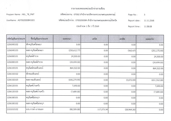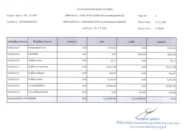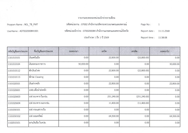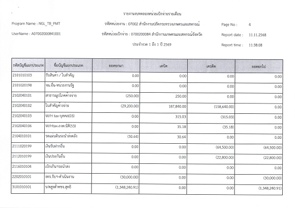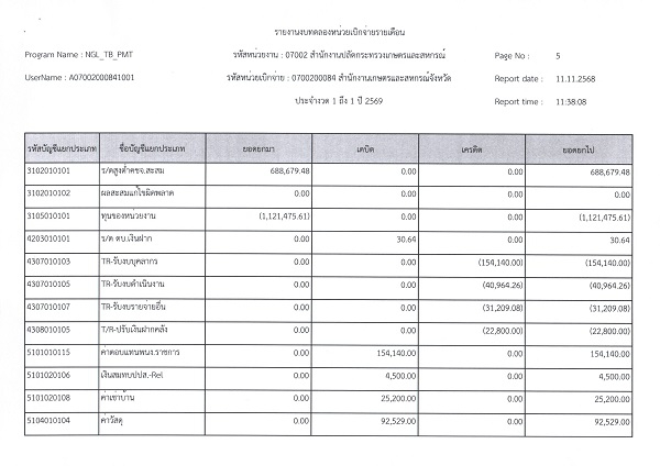 รายงานงบทดลอง สำนักงานเกษตรและสหกรณ์จังหวัดสุราษฎร์ธานี ประจำเดือนตุลาคม 2568 ประจำงวด 1 ประจำปีงบประมาณ พ.ศ. 2569